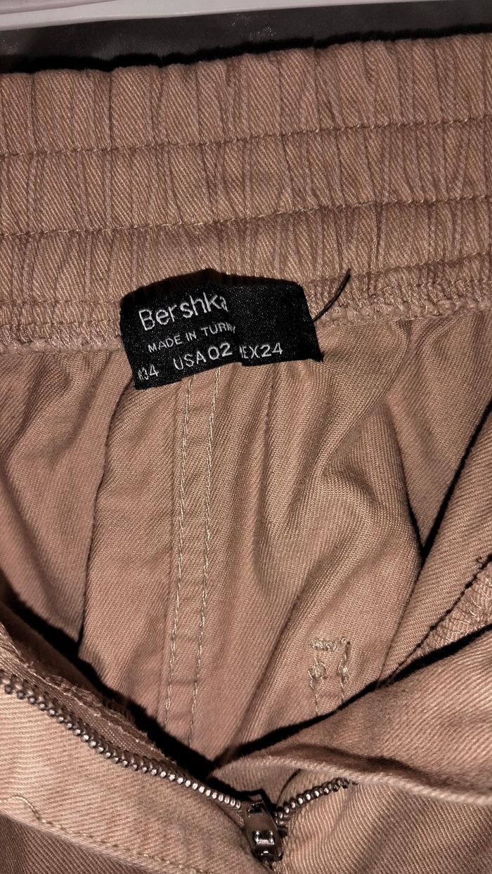 Bonjour je vends ce pantalon style cargo de couleur crème,de marque Bershka taille 34 en très bon état