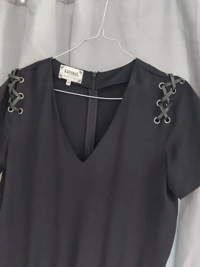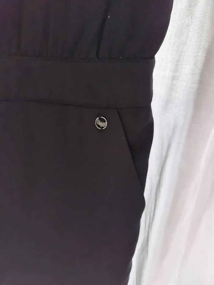 Décolleté en V Cintré Laçage avec oeillets aux épaules Effet jupe short Poches sur les côtés Fausse poches derrière Fermeture éclaire au dos Convient à une taille 36 Peu porté