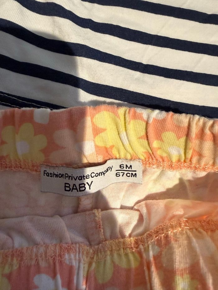 Lot de 2 tee-shirts à manches courtes + 1 short: - 1 tee shirt de la marque Kiabi en taille 6 mois (63-69cm). - 1 tee shirt de la marque Inextenso en taille 6 mois (66-71cm). - 1 short de la marque Fashion Private Company Baby en taille 6 mois (67cm). Portés quelques fois mais en très bons états.
