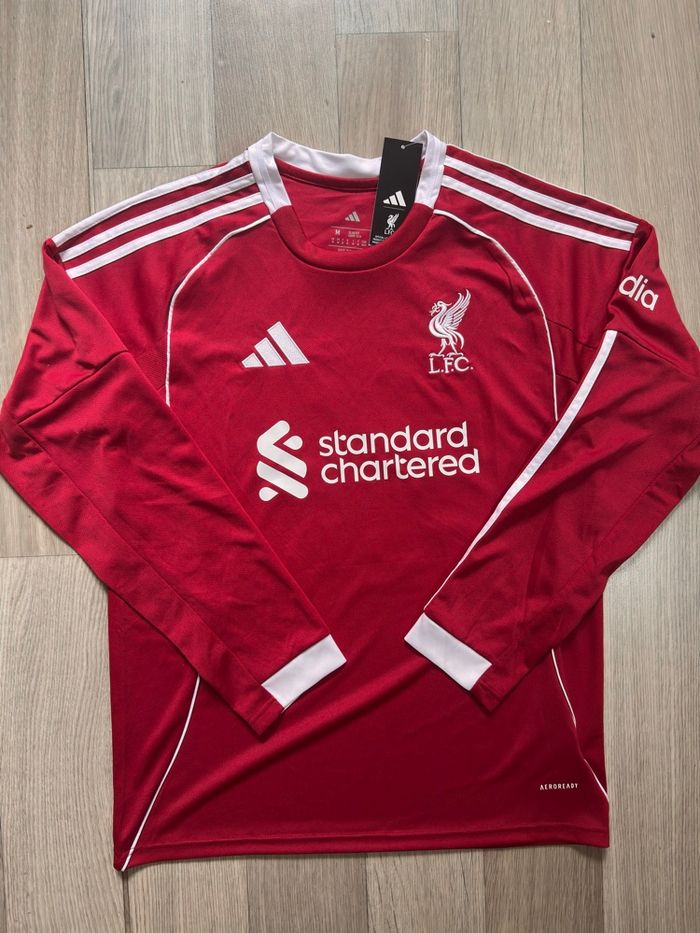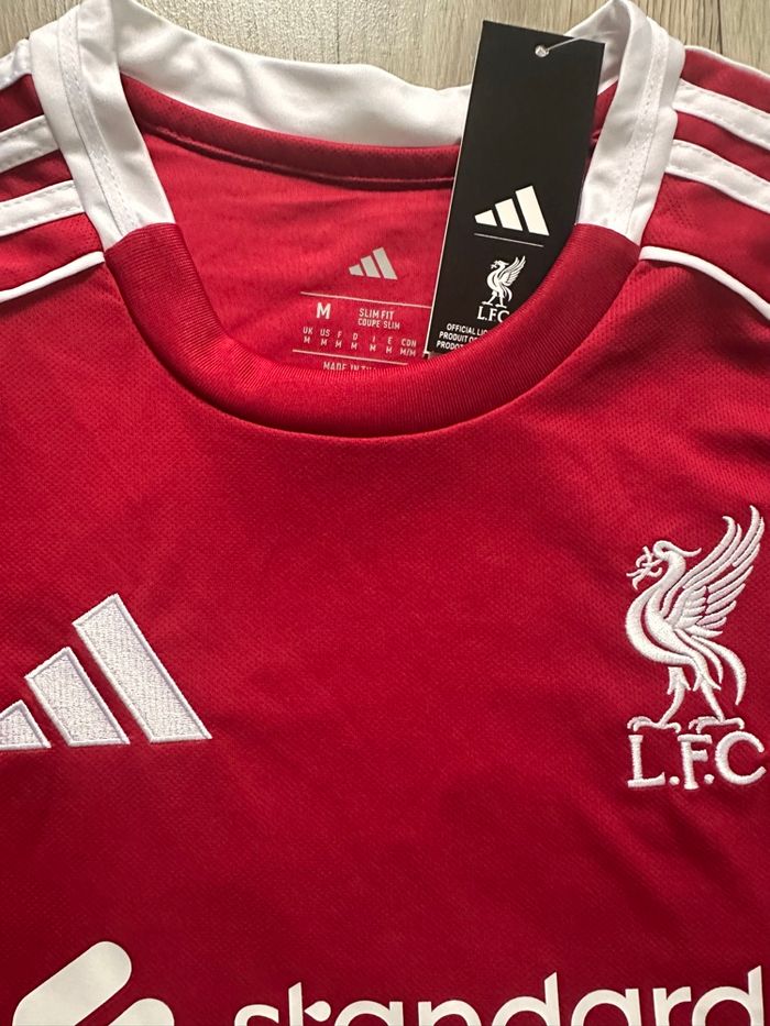 Maillot du Liverpool FC domicile saison 2025/2026, floqué Ekitike dans le dos. •🔹 État : neuf avec étiquette 🔹 Taille : M •🔹 Flocage Ligue des Champions 📦 Envoi rapide et soigné ✅ 💬 N’hésitez pas à me contacter pour toute question Prix Négociable