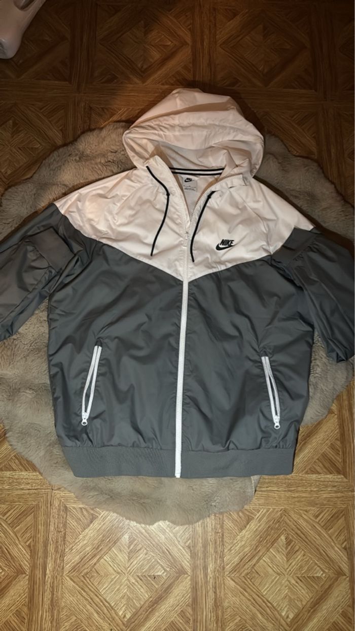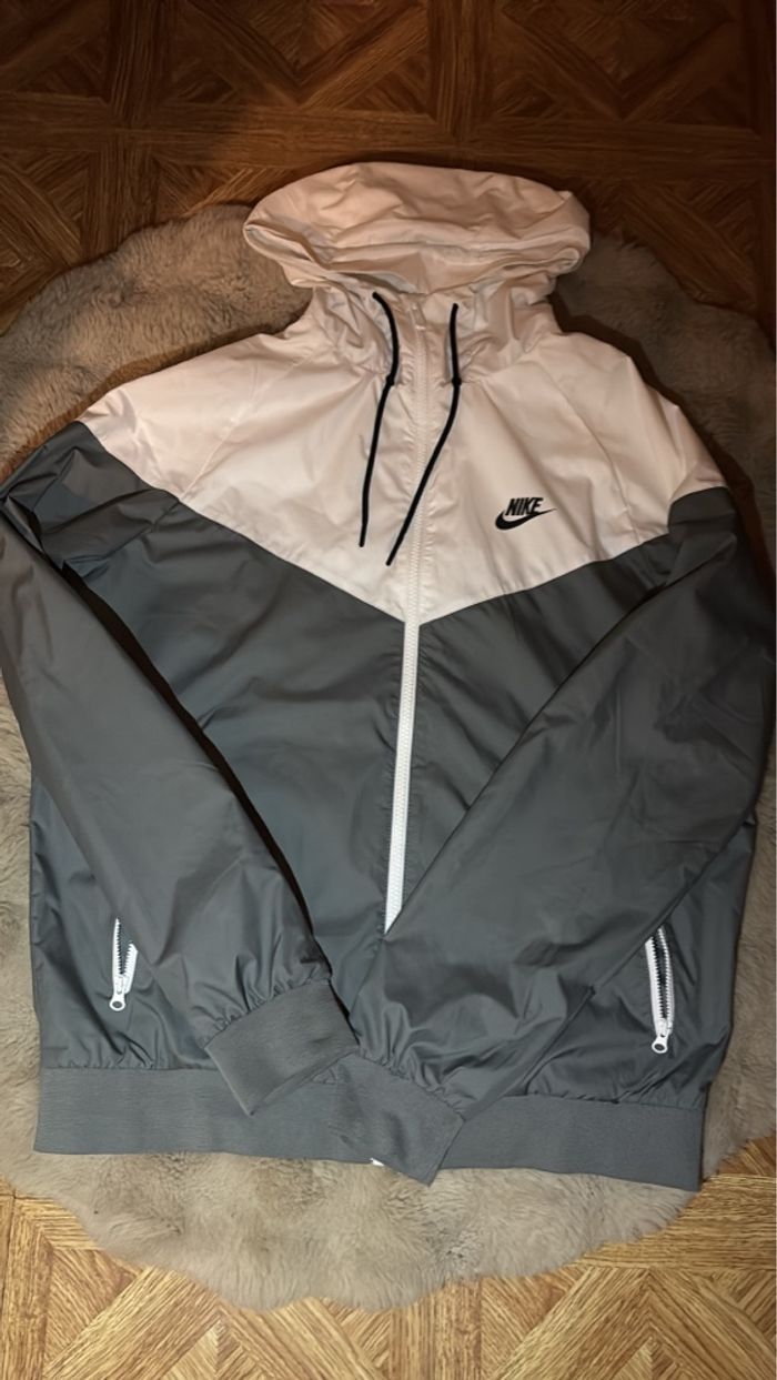 Veste coupe-vent Nike Windrunner originale, coloris gris et blanc avec logo Nike brodé sur la poitrine. Modèle léger et confortable, idéal pour la mi-saison ou les soirées fraîches. • Capuche avec cordons de serrage • Fermeture zippée intégrale • Deux poches latérales zippées • Poignets et bas élastiques pour un bon maintien • Matière légère et agréable à porter • Style streetwear / sportswear très tendance (Prix négociable)l