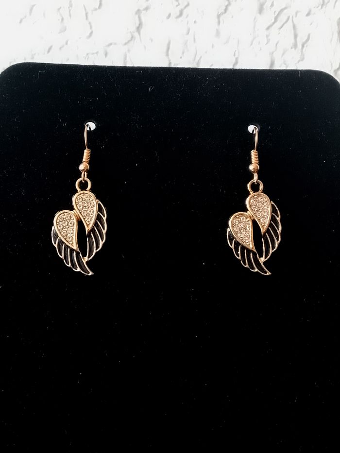 Boucles d’oreilles ailes d’anges (spirituel, bohème, boho-chic, élégant, idéal cadeau) DESCRIPTIF : Couleur : noir, doré. Dimension : 1,7 cm L * 3,6 cm H Envoi rapide et soigné.