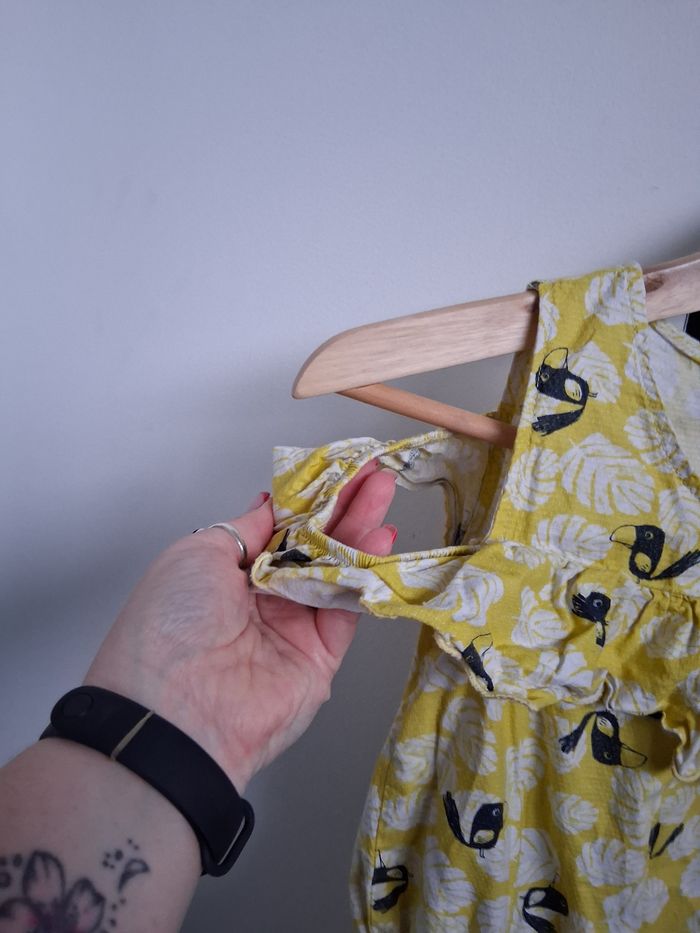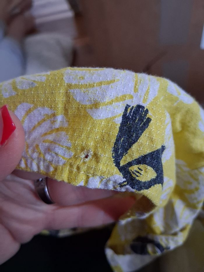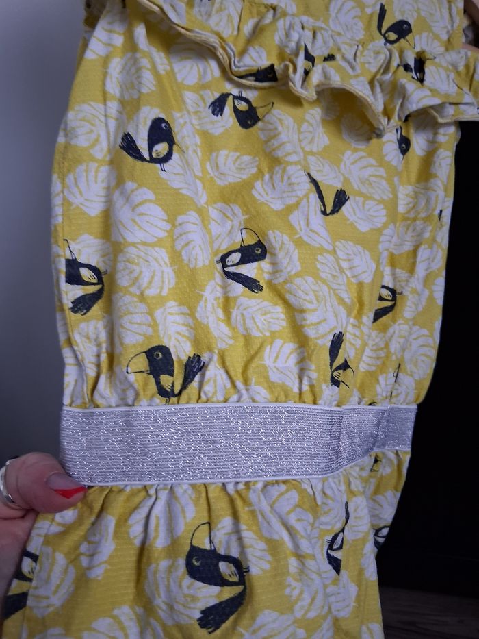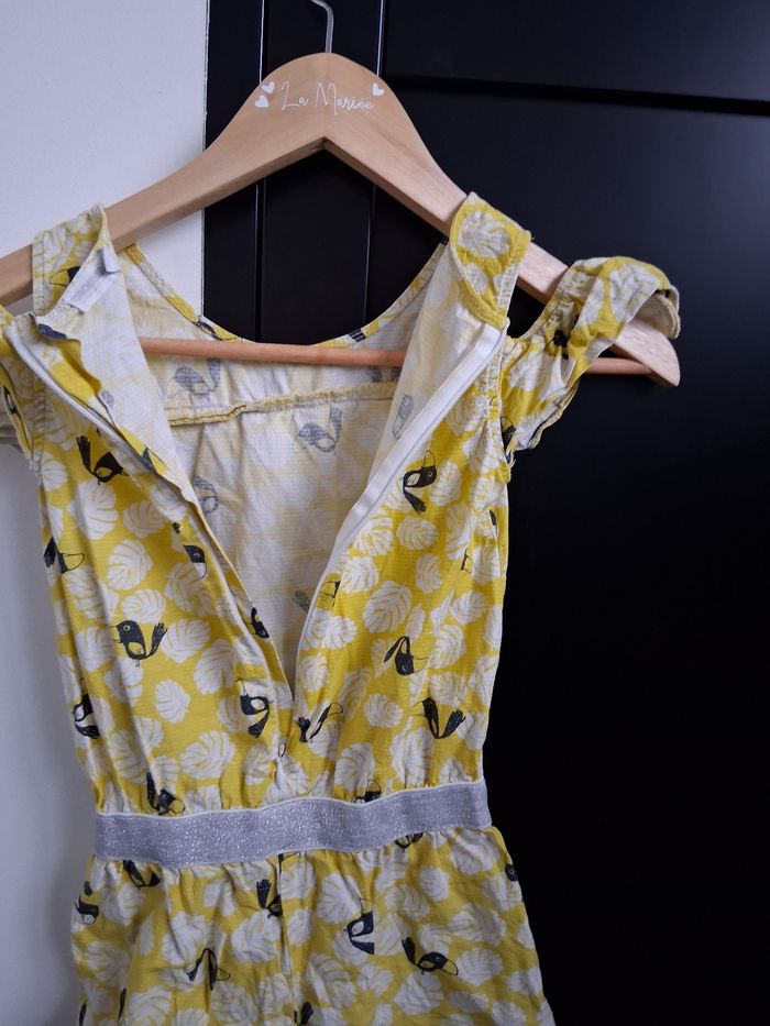 Combinaison short , en bon état. Taille 8 ans, il y a un petit trou sur l'arrière tout en bas du short. Motif oiseau et feuille