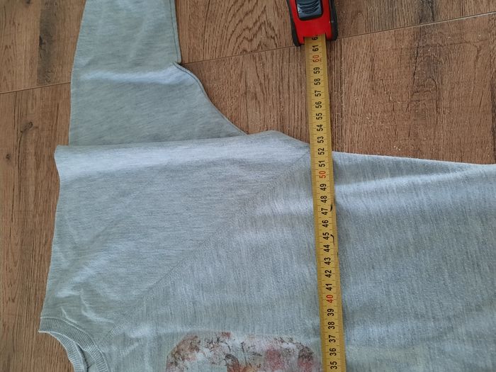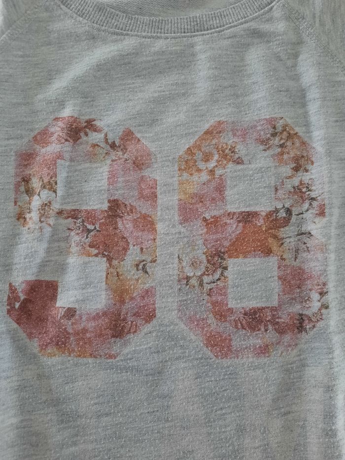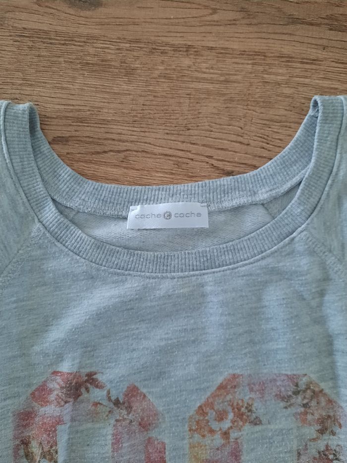 Sweat manches 3/4 et col rond. Gris chiné avec inscriptions : Team 98. 61% polyester - 39% viscose Agréable à porter. Marque : Cache-cache Taille indiquée : 4 qui correspond plutôt à un M. Dimensions et état visible sur photos.