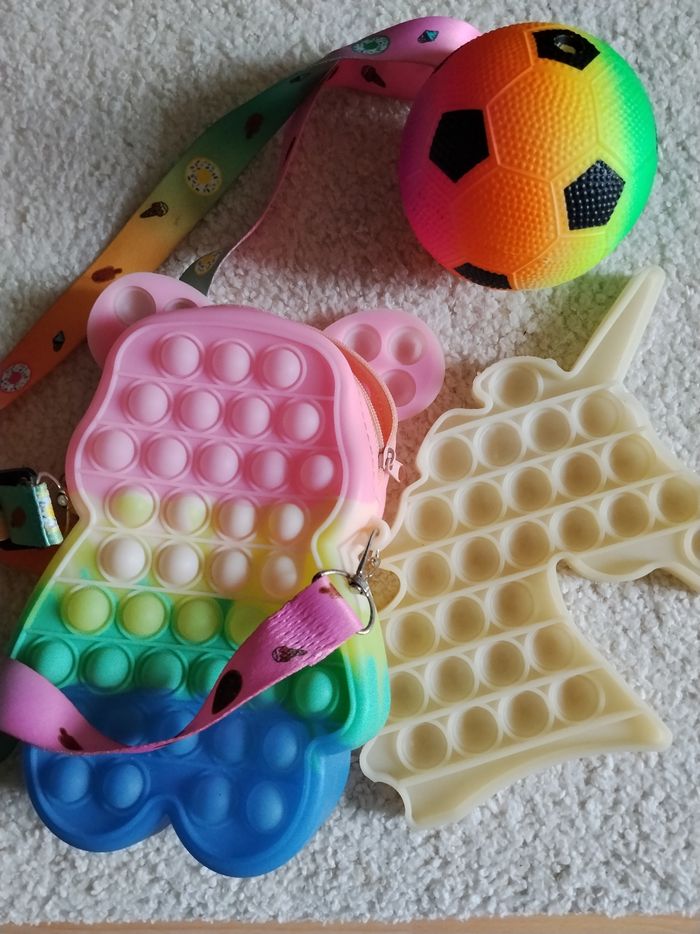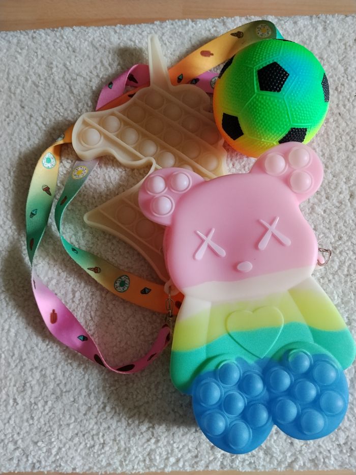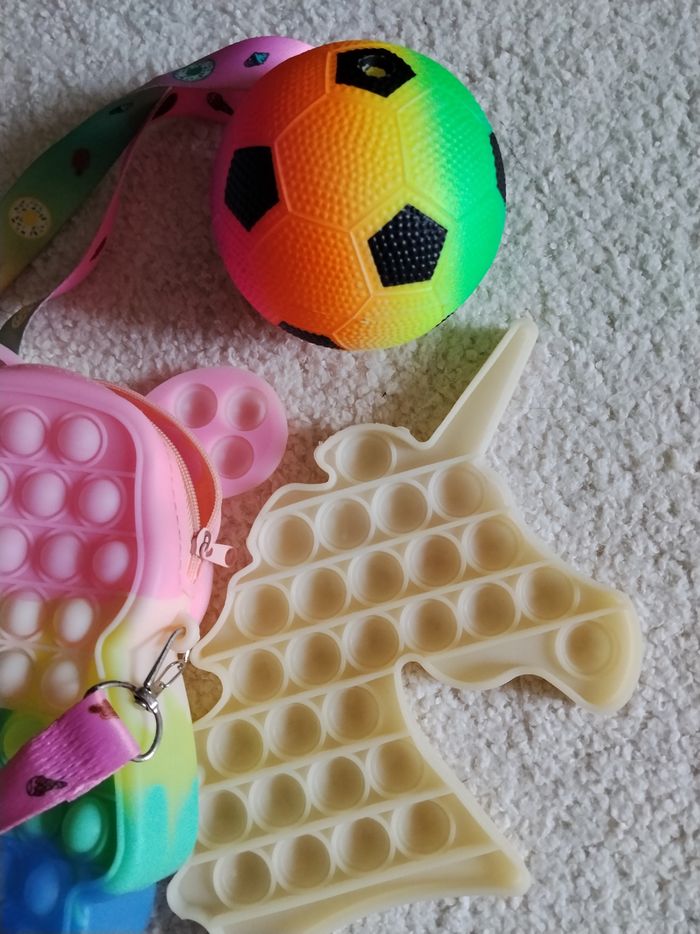 3 articles. 2 Pop-it et un petit ballon fluo dans le thème. 😽un Pop-it chat👜, 🦄Pop-it licorne. Tout âges de 1-99ans.