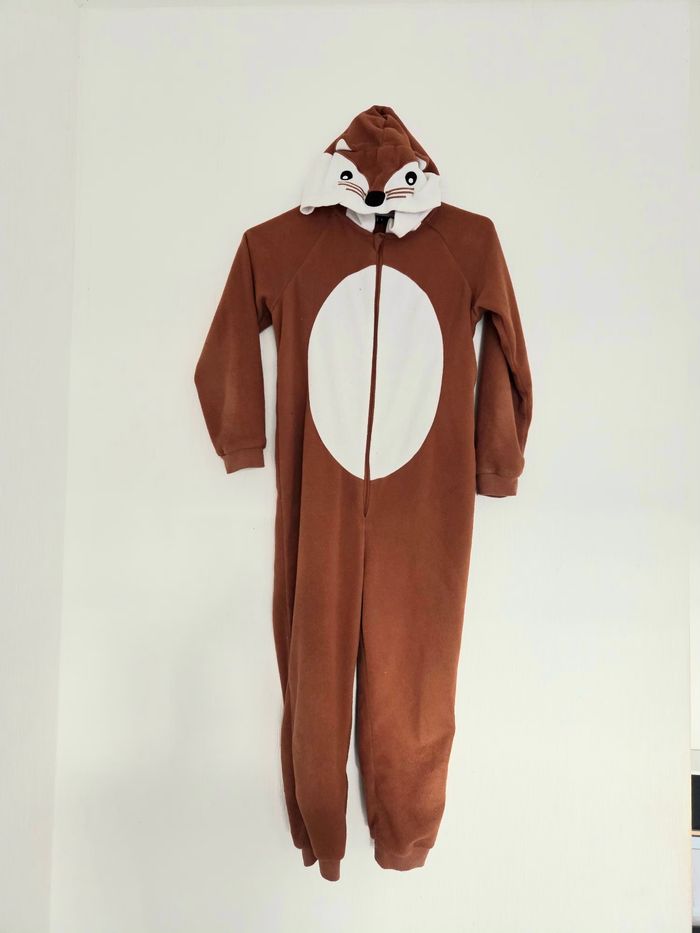 💰 Je fais des prix pour les lots n'hésitez pas à visiter mon dressing pour réduire vos frais de port ! ✨ Envoi rapide et soigné avec le transporteur de votre choix adorable combinaison pyjama (onesie) de couleur marron, idéale pour rester bien au chaud à la maison ou pour une soirée déguisée. Elle possède une capuche avec une doublure blanche contrastante. 🏷 Marque : TEX 📏 Taille : 9-10 ans (140 cm environ) 🧾 Matière : Polaire douce (100% Polyester) • ​État : Bon état général. Le tissu présente quelques bouloches d'usage normal (voir photos de près), mais elle reste très confortable, propre et sans trous ni taches. • ​Détails : Fermeture éclair sur le devant pour un habillage facile. Poignets et chevilles resserrés