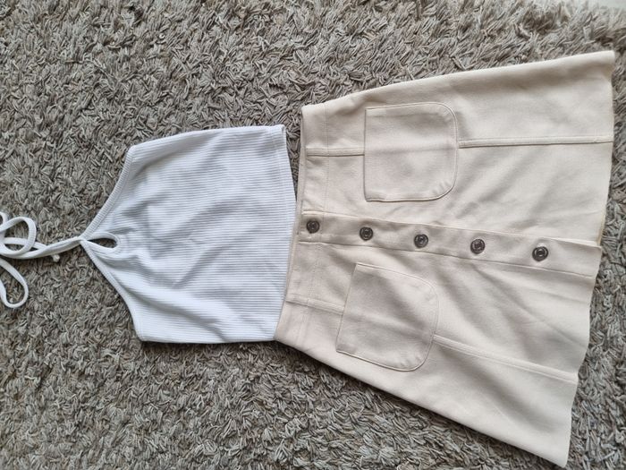 Ensemble XS composé d'un top dos nu kiabi et d'une jupe style daim jennyfer