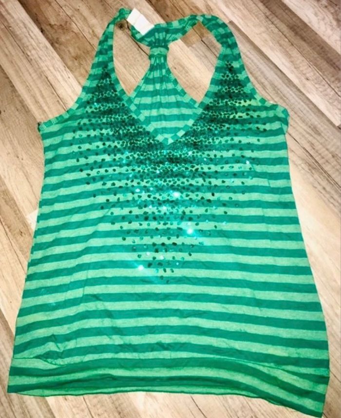Debardeur vert et strass bershka m