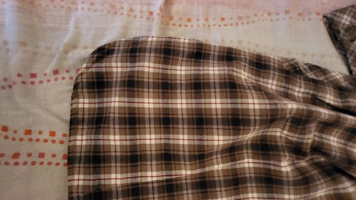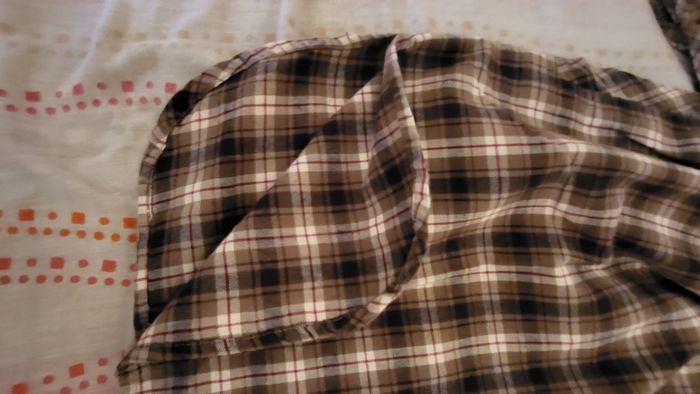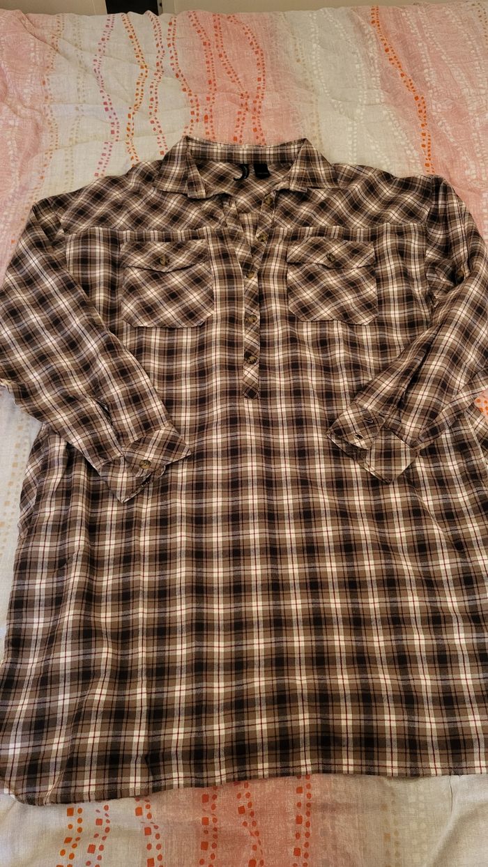 Robe tunique t40 En coton epais et doux, bas forme arrondie Portée 2 fois, très bon état Peut se porter sans rien ou avec une ceinture, je donne celle que je mettrais avec. Coloris: tons marons et beiges