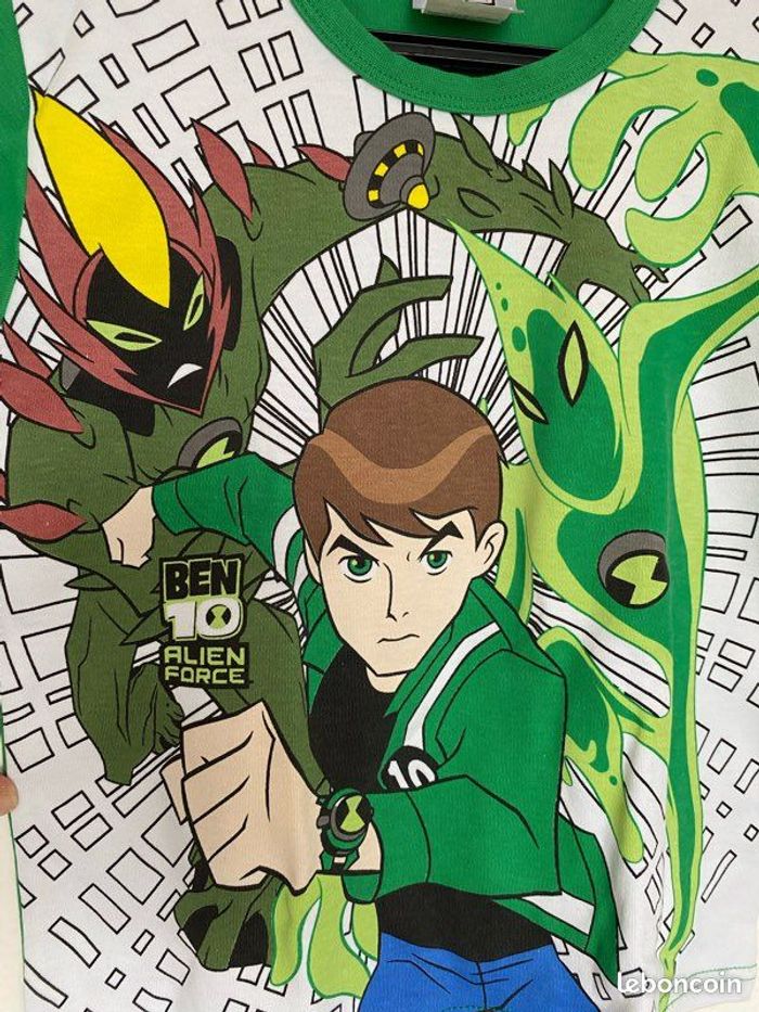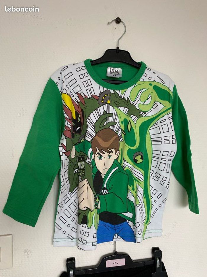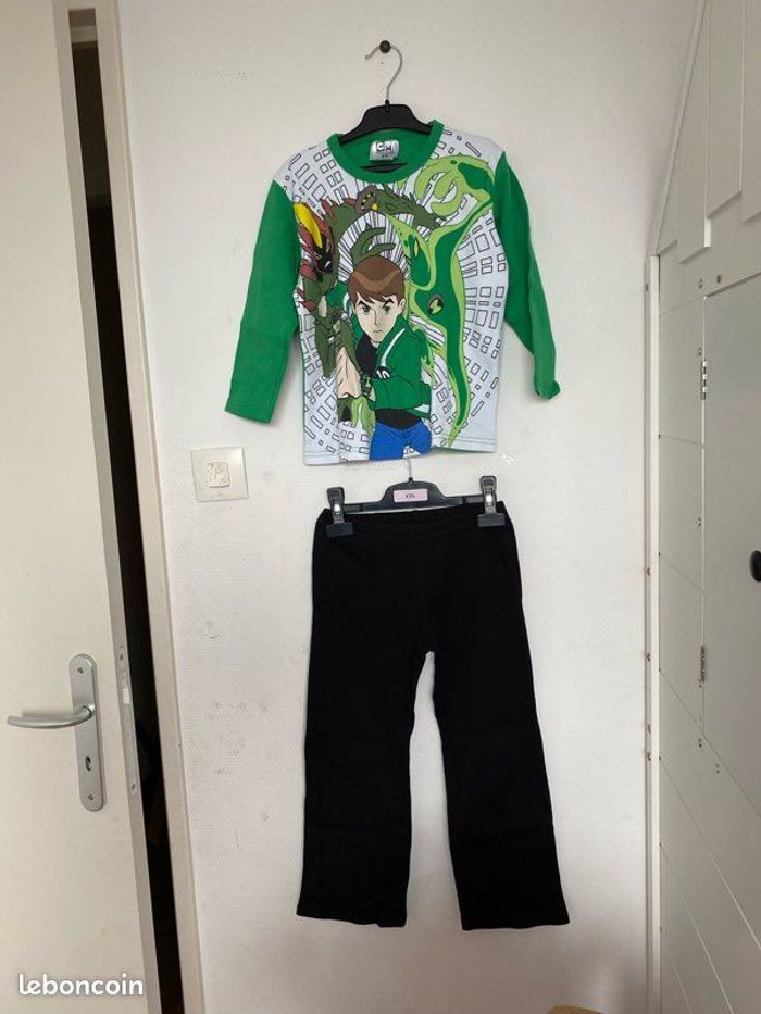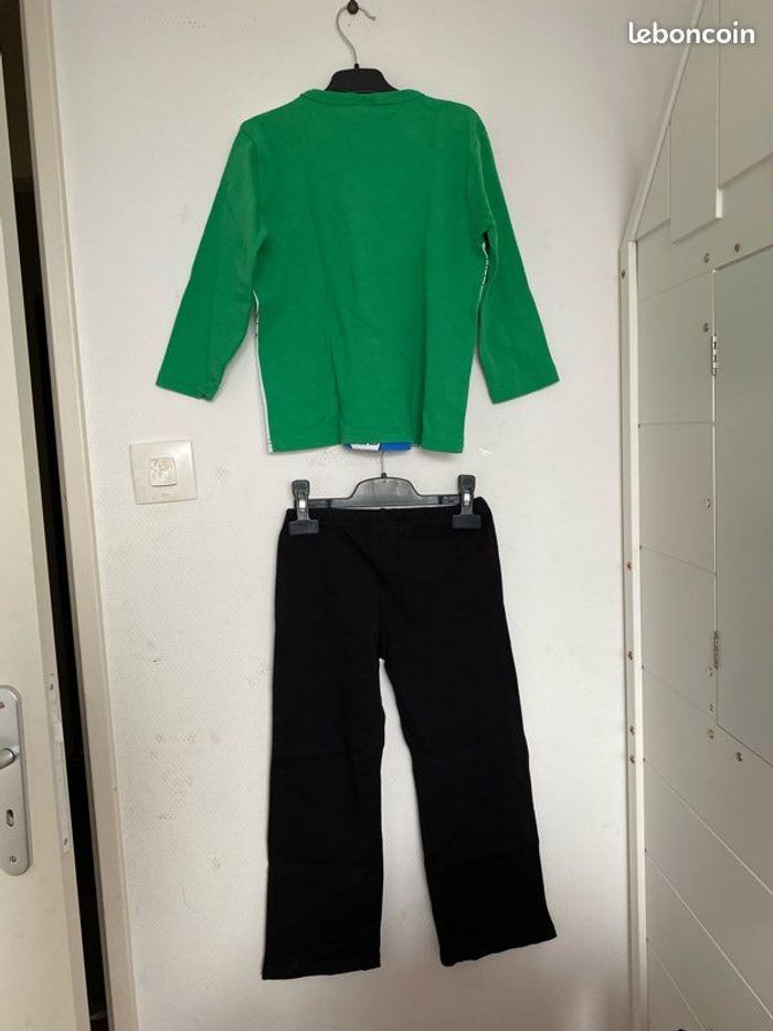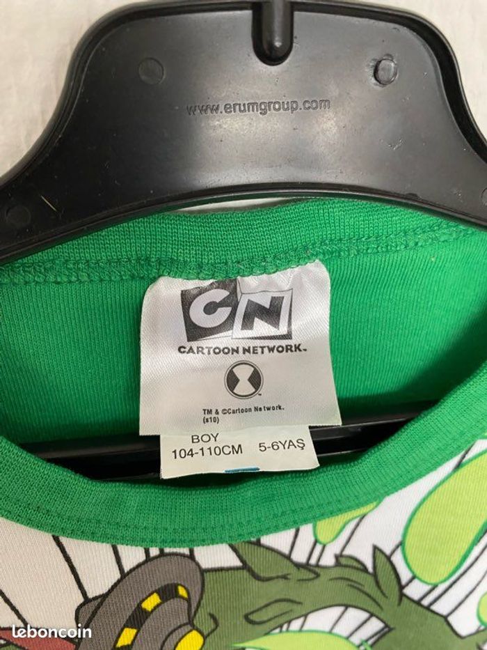 Je vends ce pyjama pour enfant garçon composé d'un haut vert avec un motif imprimé et d'un pantalon noir. - Type de produit : Pyjama - Univers : Enfant - Taille : 5 ans / 110 cm - Couleur du haut : Vert - Couleur du pantalon : Noir - Caractéristiques : Haut à motif imprimé - Marque : cartoon network