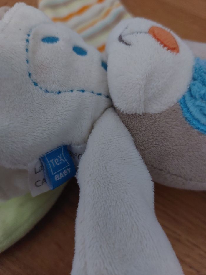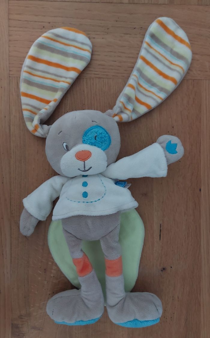 Doudou peluche lapin avec 1 feuille verte Tex baby bon état