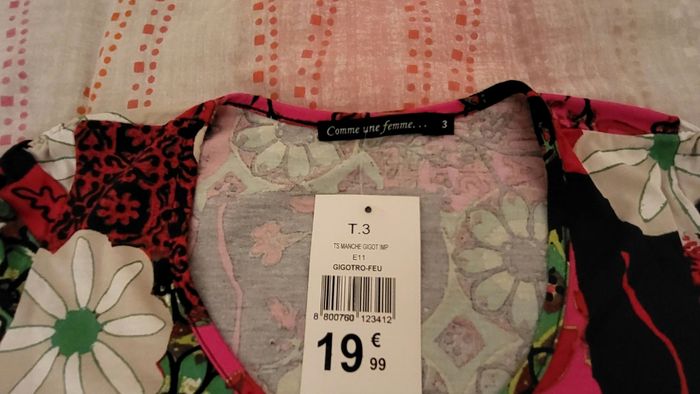 Joli haut de la marque Comme une femme T3, correspond à un 38/40 Neuf avec étiquette Manches froncées Viscose elastane