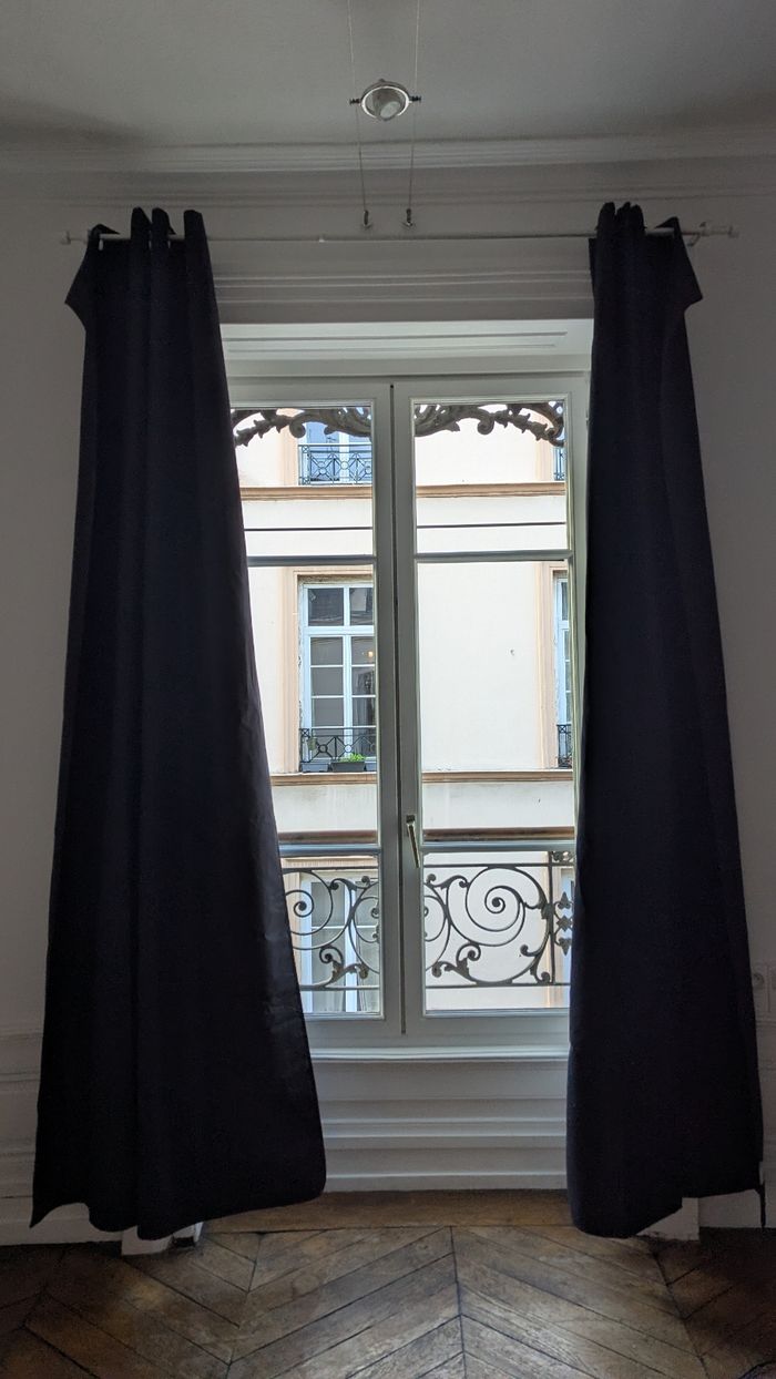 Paire de rideaux réellement occultants, comme neuve, 100% polyester.