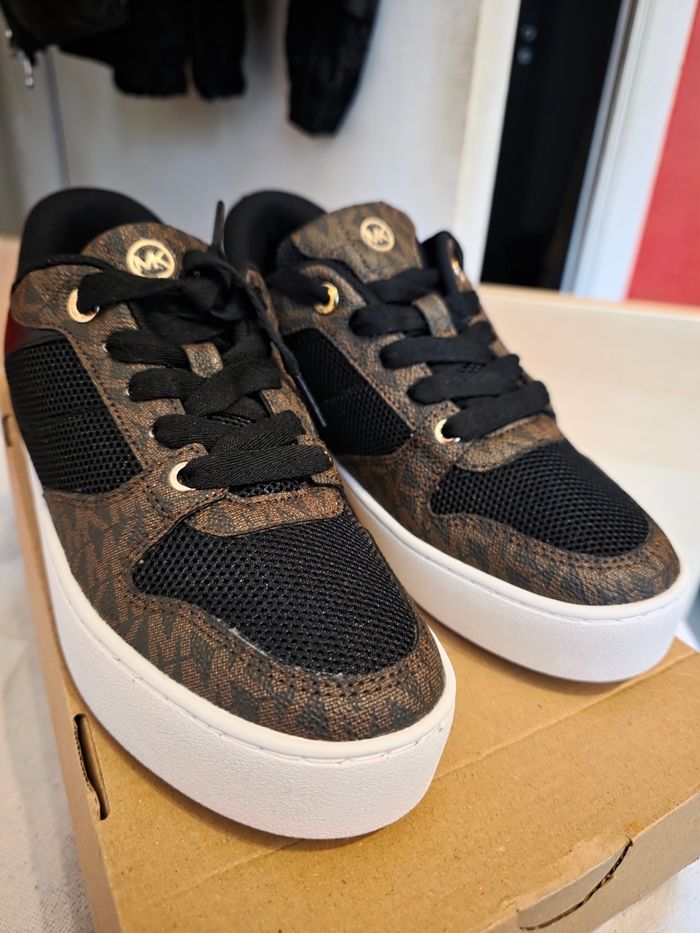 Je vends cette magnifique paire de basket Michael Kors. Elles sont neuves. Toujours dans leurs boite. Juste la boite qui à été endommagé par le transporteur. Prix d'achat : 150€. Envoi rapide et soigné.
