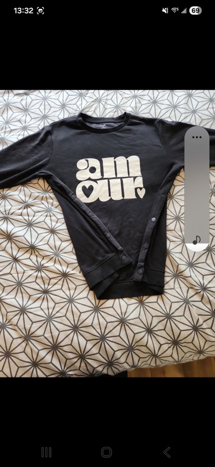 Porté quelques fois. Ouverture sur chaque côté. Pull-over allaitement et maternité