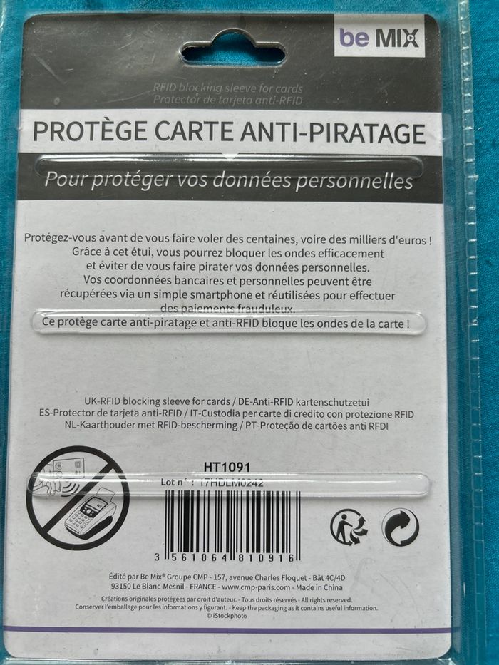 Étui protège carte bancaire évite les transmissions frauduleuses et distances Neuf dans son emballage d’origine Sécurité