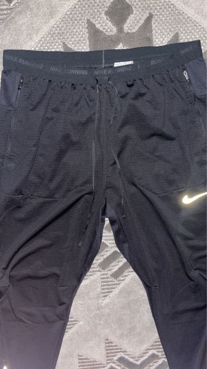 Je vends ce pantalon de sport Nike Phenom de couleur noire. - Type de produit : Pantalon - Marque : Nike - Couleur : Noir - Taille : M - Caractéristiques : Taille élastiquée, Bandes réfléchissantes N'hésitez pas à me contacter pour plus d'informations ou de photos.