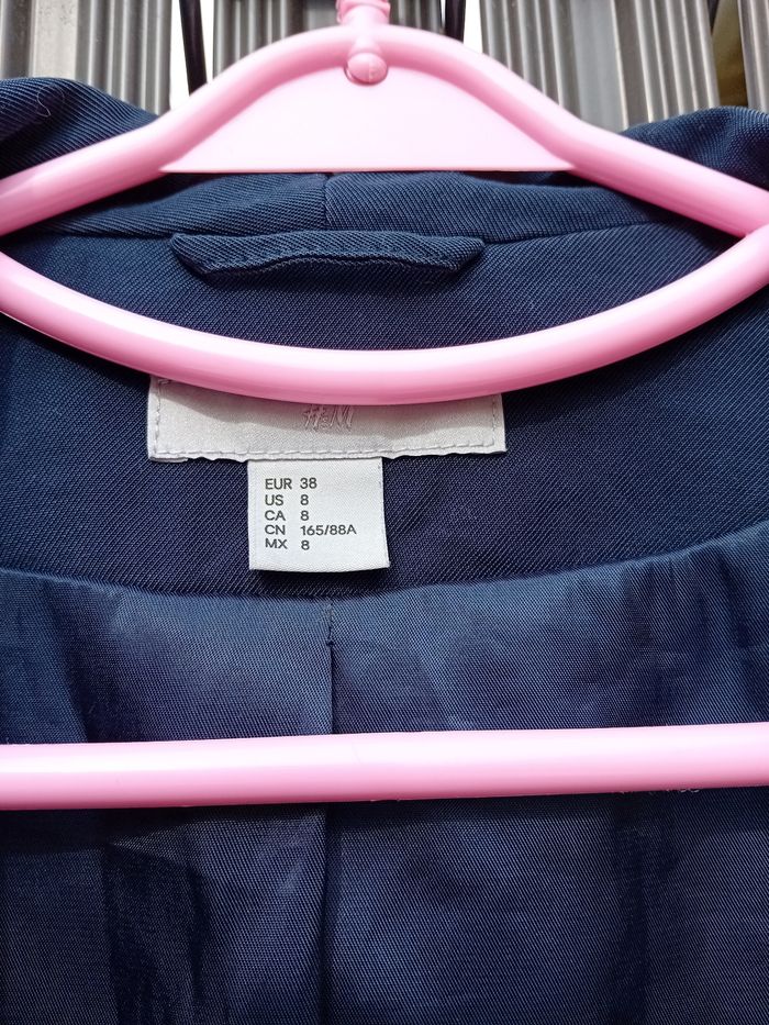 Blazer bleu marine sans fermeture et fausses poches En viscose et polyester Taille 38 M Marque H&M