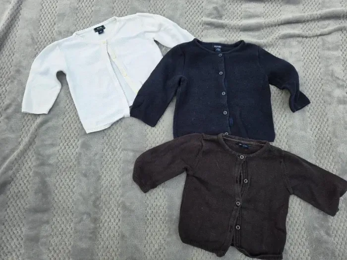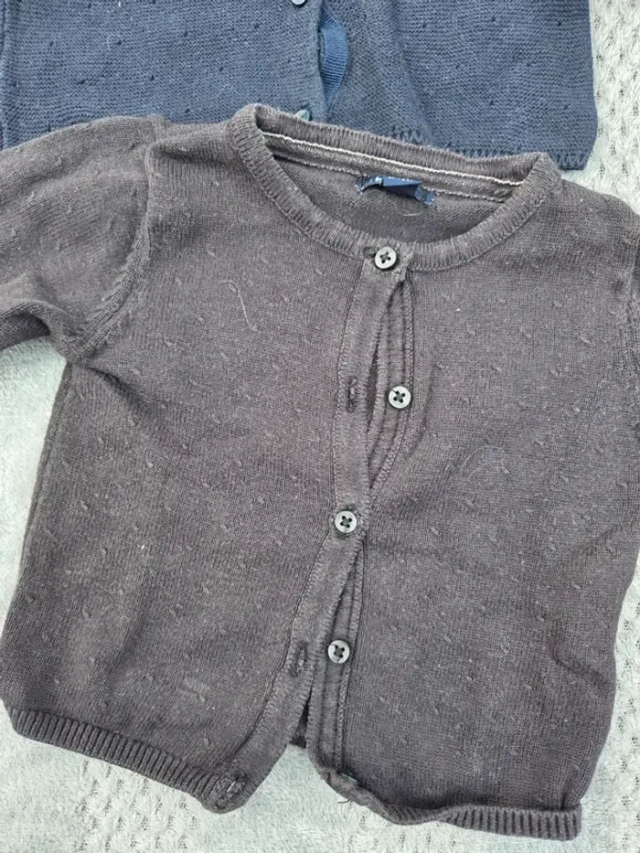 🎀 -> Lot de 3 gilets a bouton ( noir, bleu marine et blanc ) 🎀 -> Kiabi 🎀 -> 3 mois ( 60 cm ) 🎀 -> 5 €