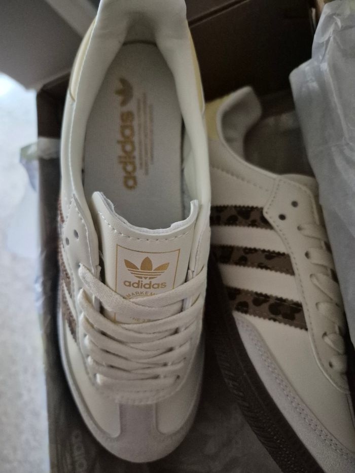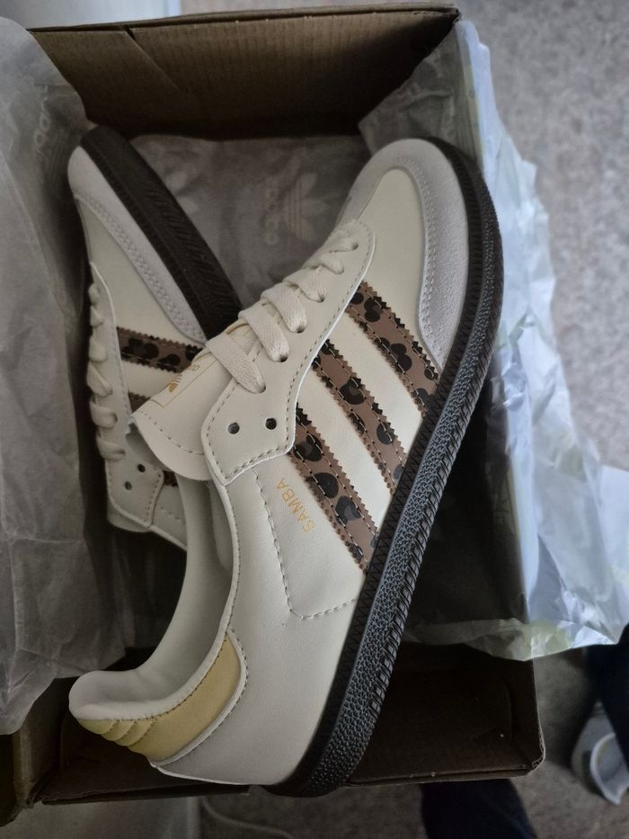 Je vend une paire de samba beige et léopard neuf pointure 39.1/2 Mais convient au 39 ayant essayer .