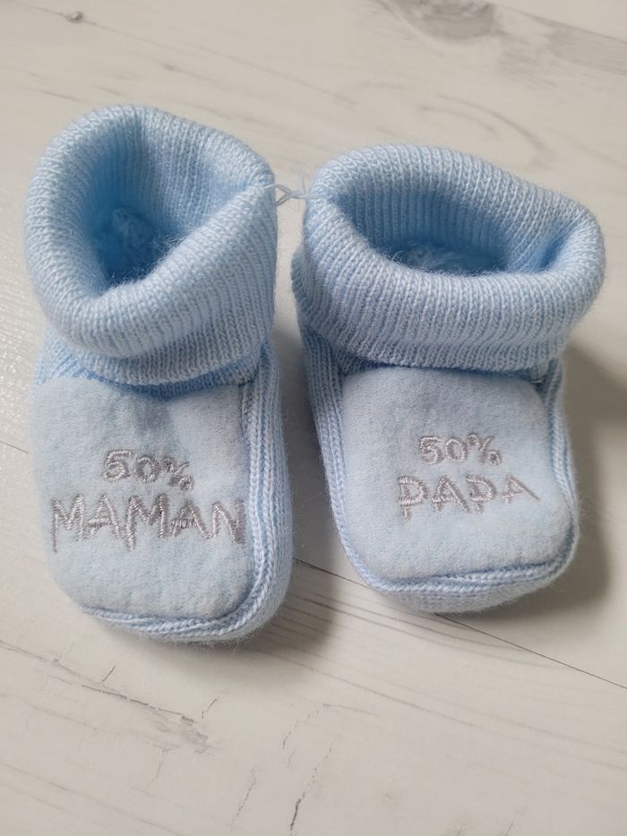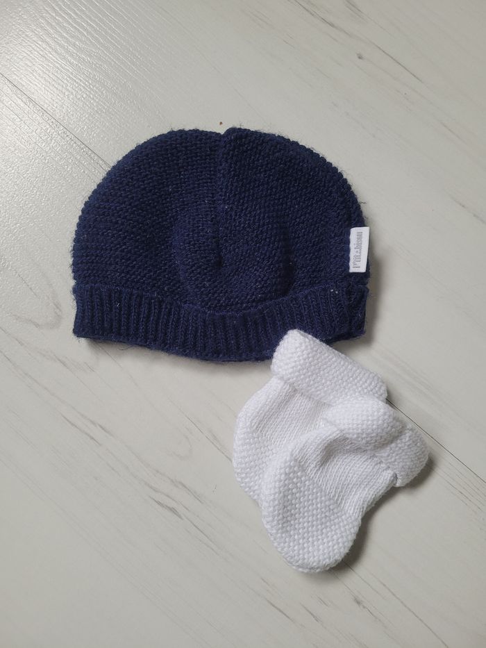 Lot de 3 bonnets de taille Naissance composée de 2 bonnets kiabi , 1 ptit bisou et 3 paires de moufles en très bon état voir neuf Les chaussons sont neufs #bébé #bonnet #naissance #mouflesbebe #hiver