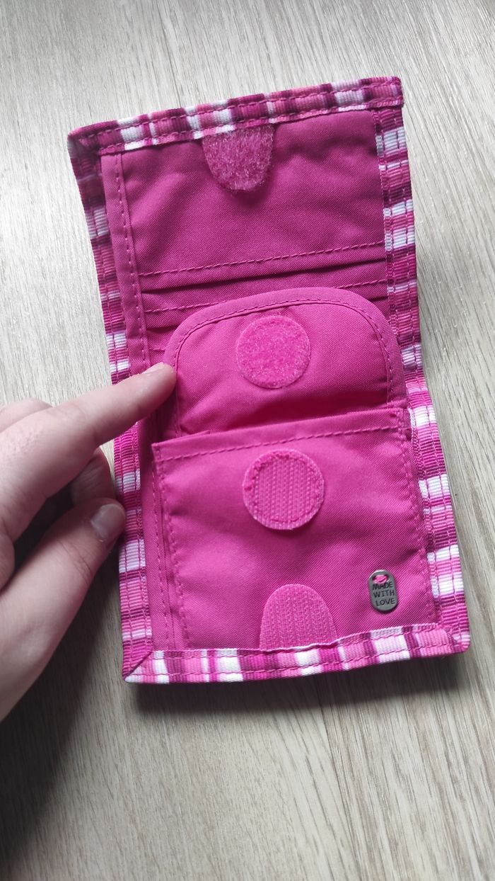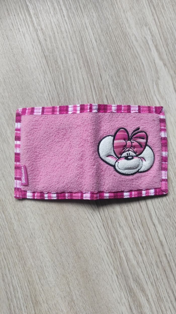 Portefeuille Diddlina (la petite amie de Diddl) assorti au style du sac. Un accessoire authentique des années 2000, idéal pour les enfants ou les collectionneurs. Design : Matière effet "polaire" toute douce de couleur rose, avec une belle broderie de Diddlina sur le devant. Bordure à carreaux (vichy) rose et blanc. Intérieur : Très fonctionnel avec plusieurs compartiments. Comprend un porte-monnaie avec rabat, des emplacements pour cartes et une grande poche pour les billets. État : Très bon état. Fermeture : Fermeture par scratch qui agrippe encore parfaitement. D'autres articles Diddl sont disponibles dans mon dressing, n'hésitez pas à y jeter un œil ! #diddl #diddlina #portefeuille #accessoireenfant #vintage #annees2000 #y2k #rose #portemonnaie #collection #depesche