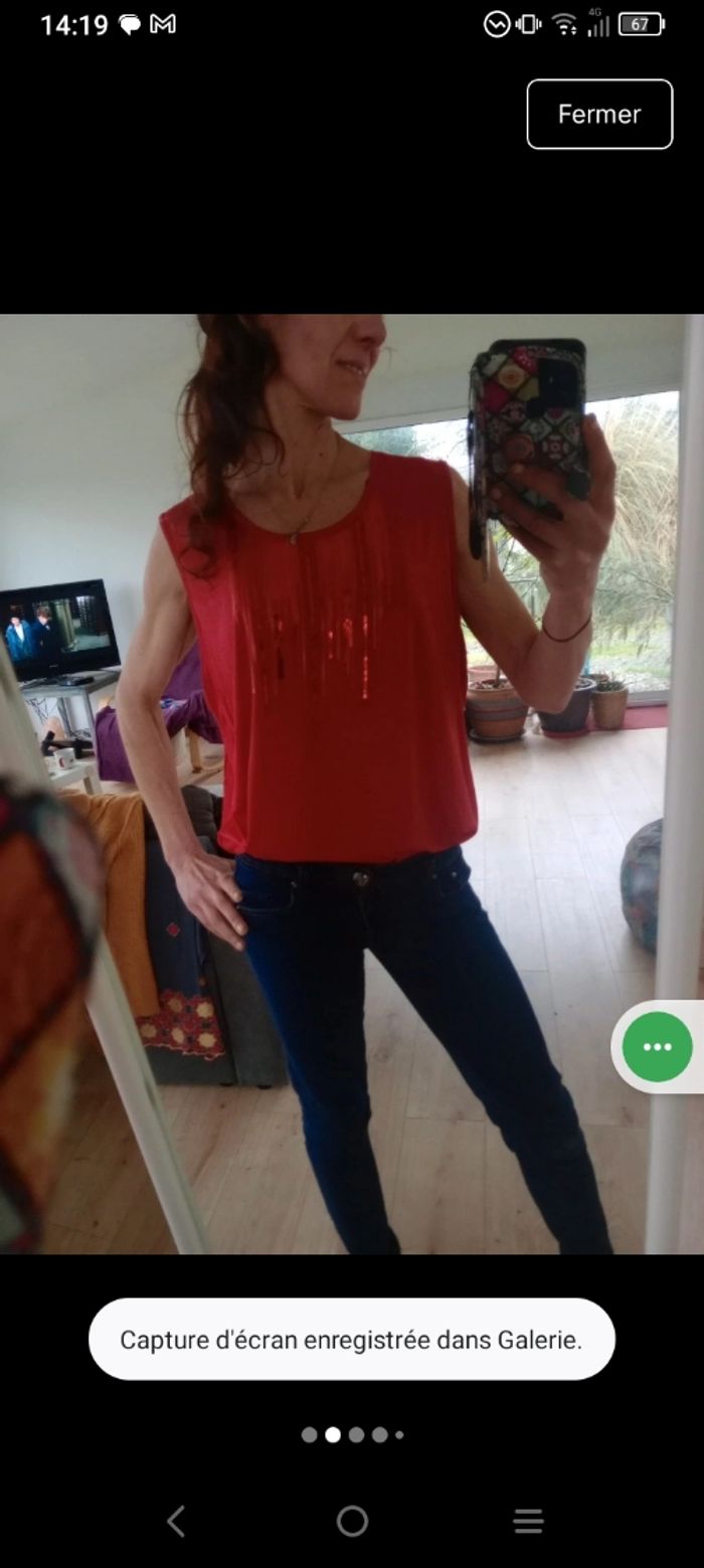 Top sans manches femme XL rouge sequins c79 - photo numéro 9