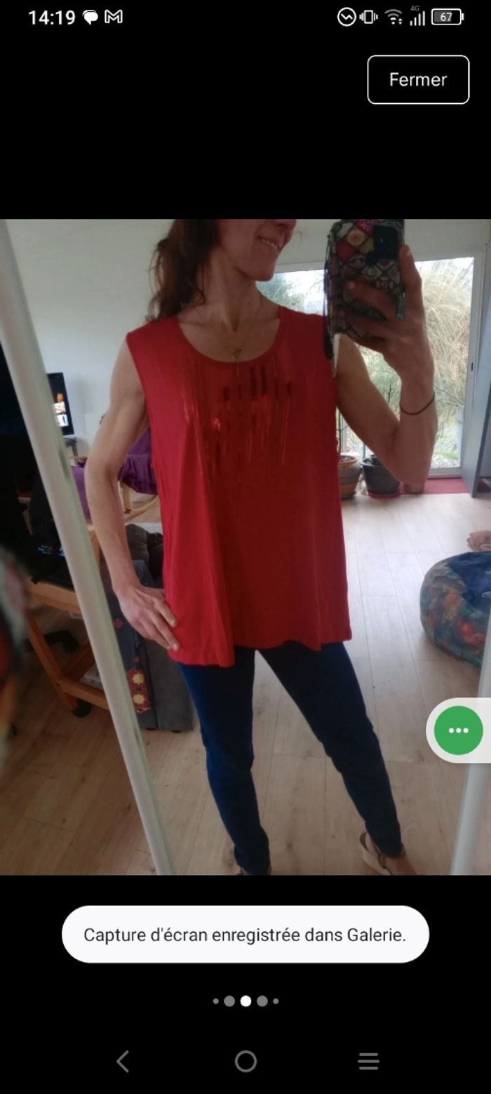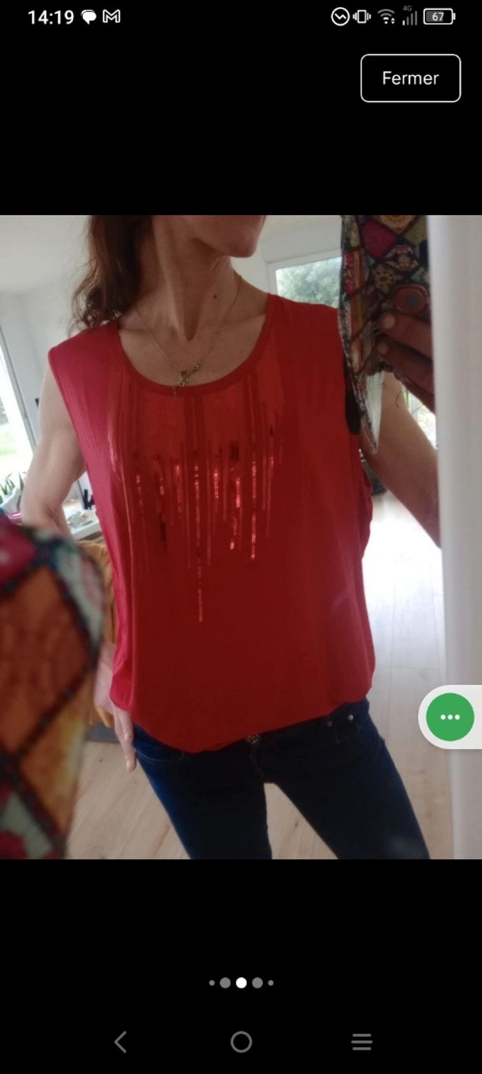 Top sans manches femme XL rouge sequins c79 - photo numéro 3