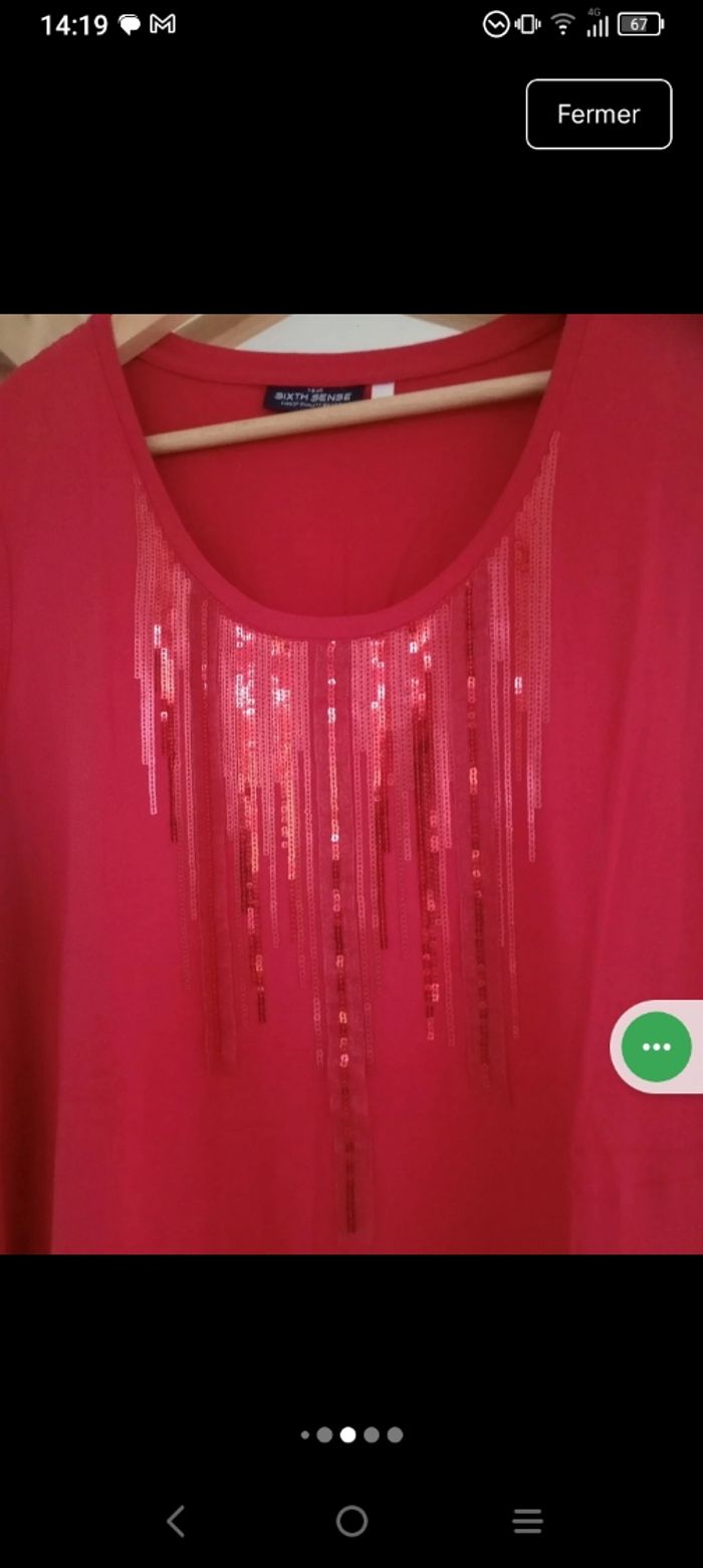 Top sans manches femme XL rouge sequins c79 - photo numéro 10