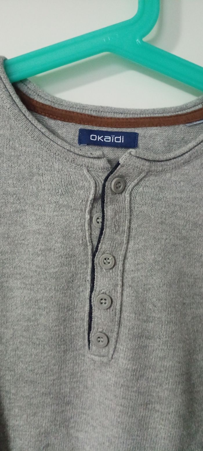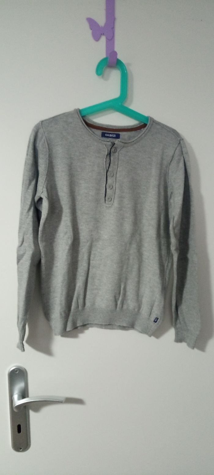 Je vends un pull enfant de la marque Okaïdi, couleur gris chiné, manches longues, facile à porter. Col rond avec bouton Matière douce et agréable, idéal pour l’école ou le quotidien. En très bon état, Taille 6/8 ans Envoie rapide avec mondial Relay