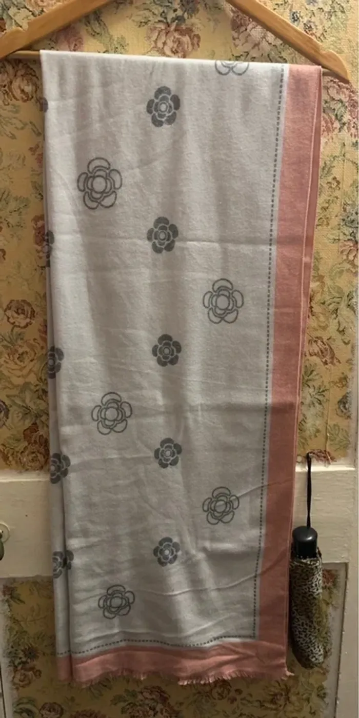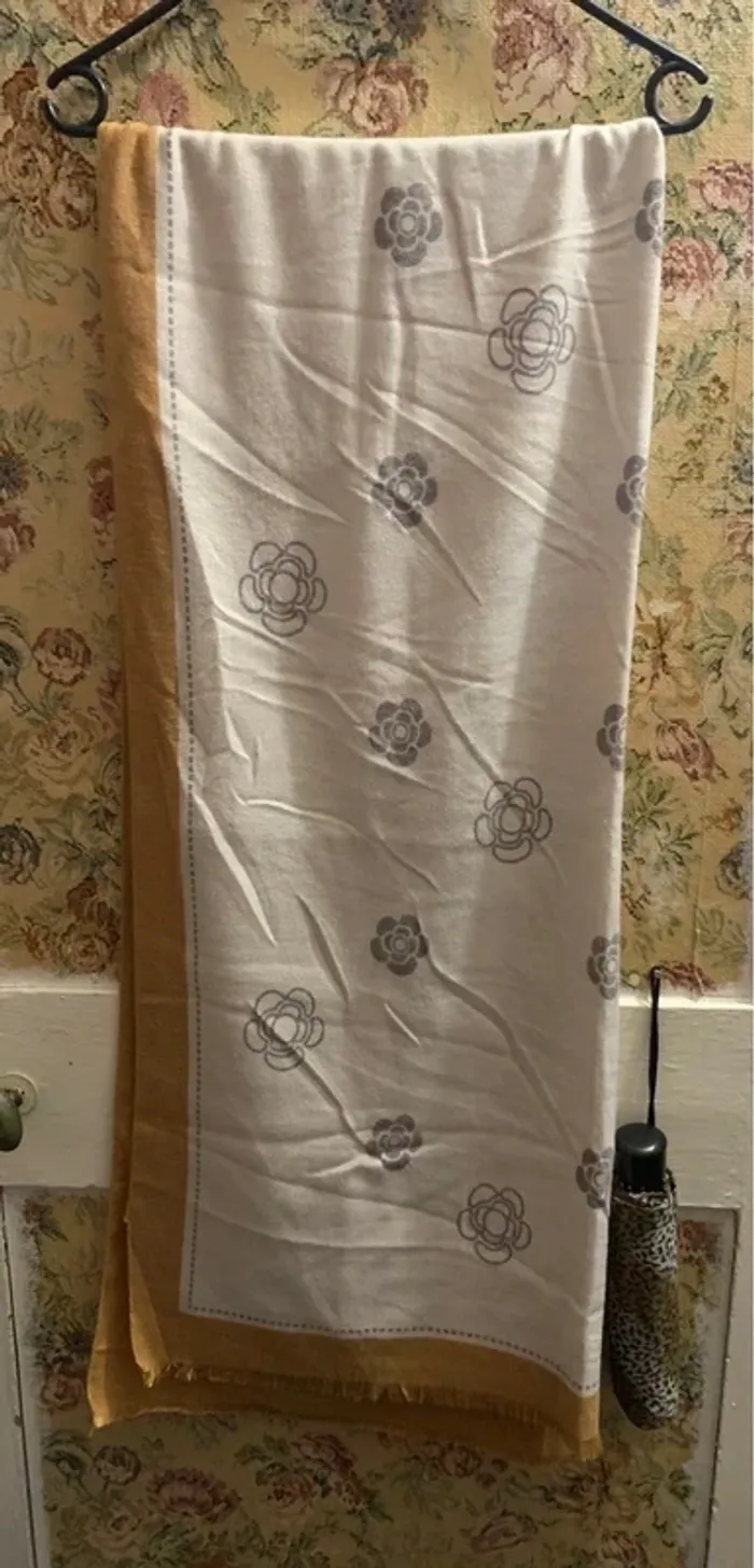Je vends ces grandes écharpes. - Type de produit : Écharpes - Univers : Femme - Couleur : Beige / Rose - Beige / Moutarde - Motif : Fleurs stylisées imprimées État neuf sans étiquette N'hésitez pas à me contacter pour plus d'informations !