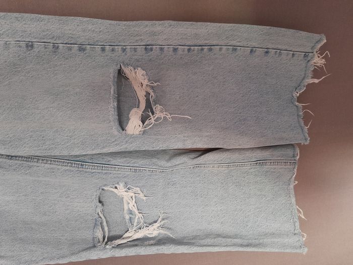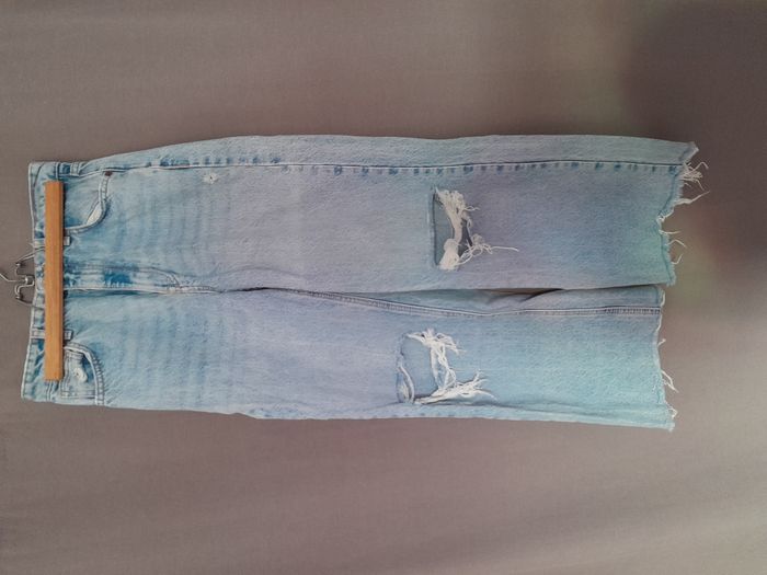 Jean, jambe large, ajouré sur les jambe, 5 poche Longueur : 96cm Taille en cm : 34 Matière : 100 % Coton Marque : Zara
