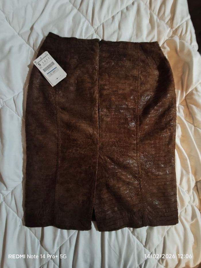 👗 Jupe ZARA – Taille S Jupe ZARA couleur marron, taille S, neuve avec étiquette. Modèle élégant et facile à assortir, avec fermeture éclair à l’arrière pour un enfilage pratique et une jolie coupe ajustée. ✨ Idéale pour un look chic au quotidien ou pour une tenue plus habillée.