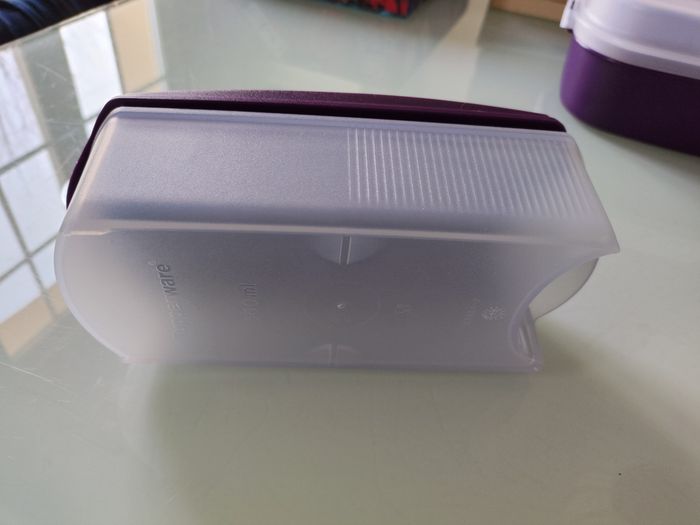 Boîte Tupperware 350 ml modulaire pop, pratique pour le sucre, la farine, les céréales ou autres aliments secs. Ouverture facile, rangement vertical gain de place. • Couleur : violet et blanc • État : très bon état • Plastique robuste et durable Idéal pour une cuisine organisée. Envoi rapide et soigné.