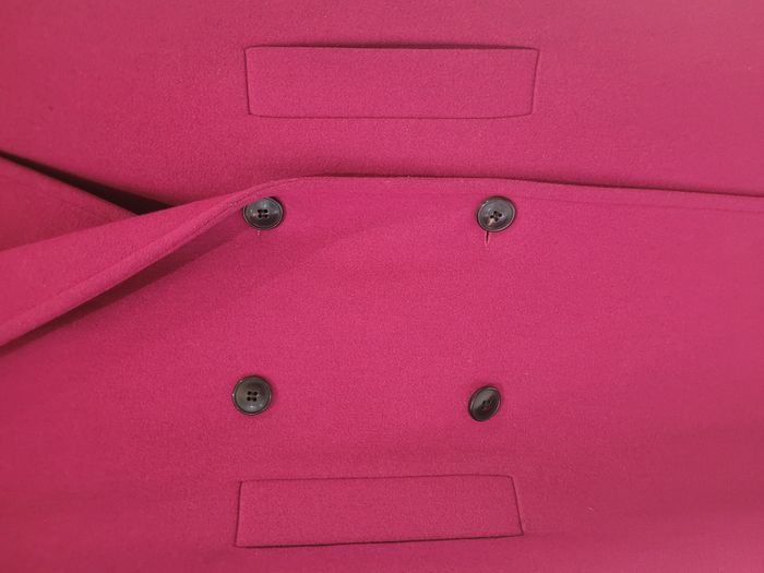 Manteau long en laine 60% Couleur fuschia framboise hyper mode ! Coupe droite Bouton brun-noir Taille S mais parfait pour M aussi