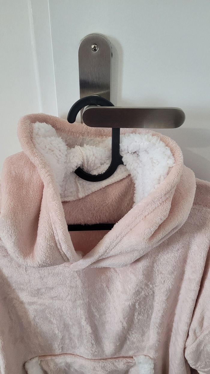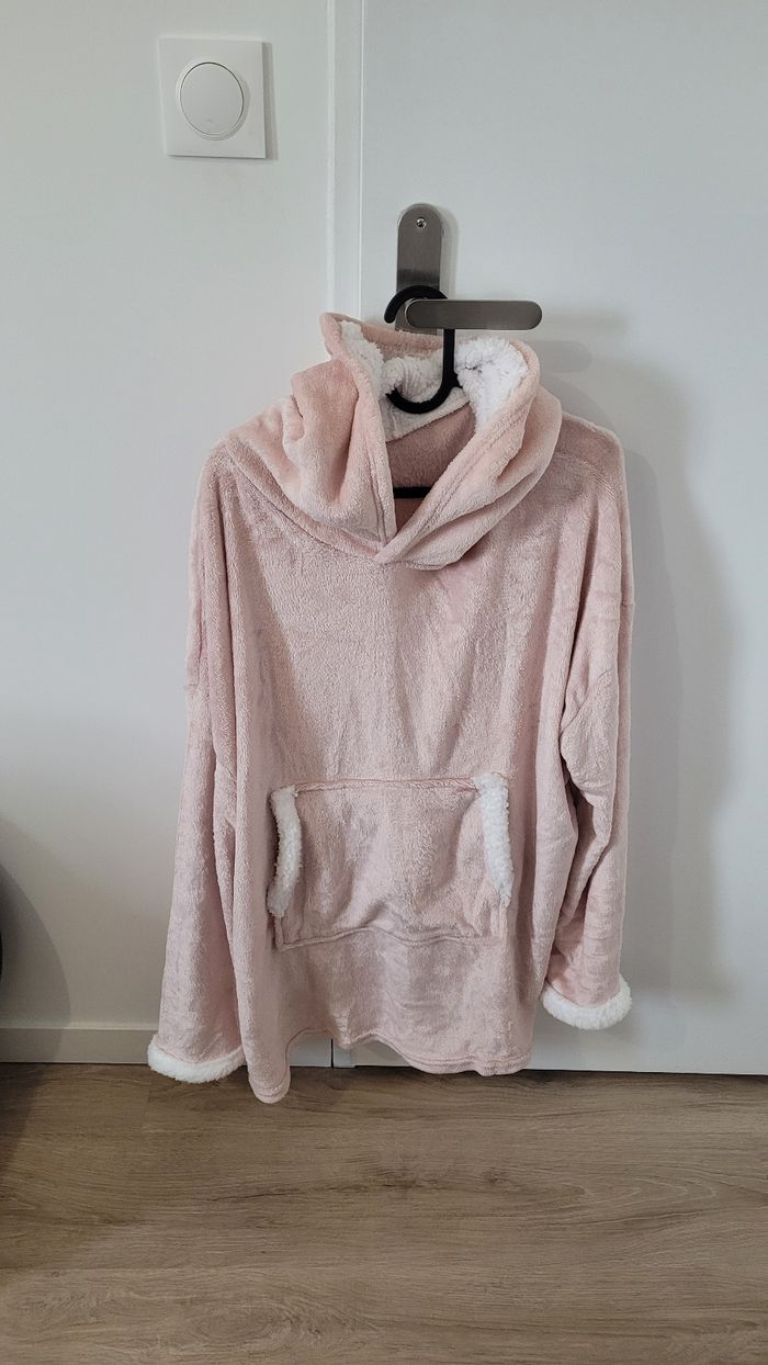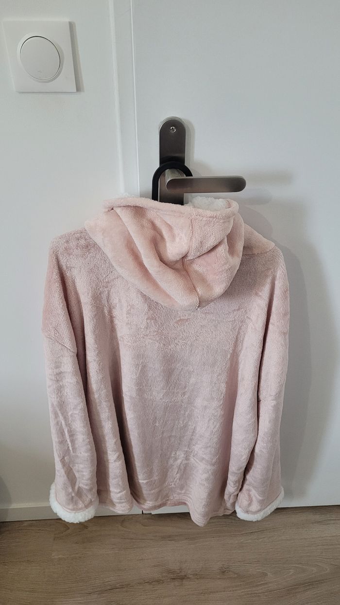 Pull plaide rose à moumoute, neuf, jamais porté, taille unique, 70cm par 80cm