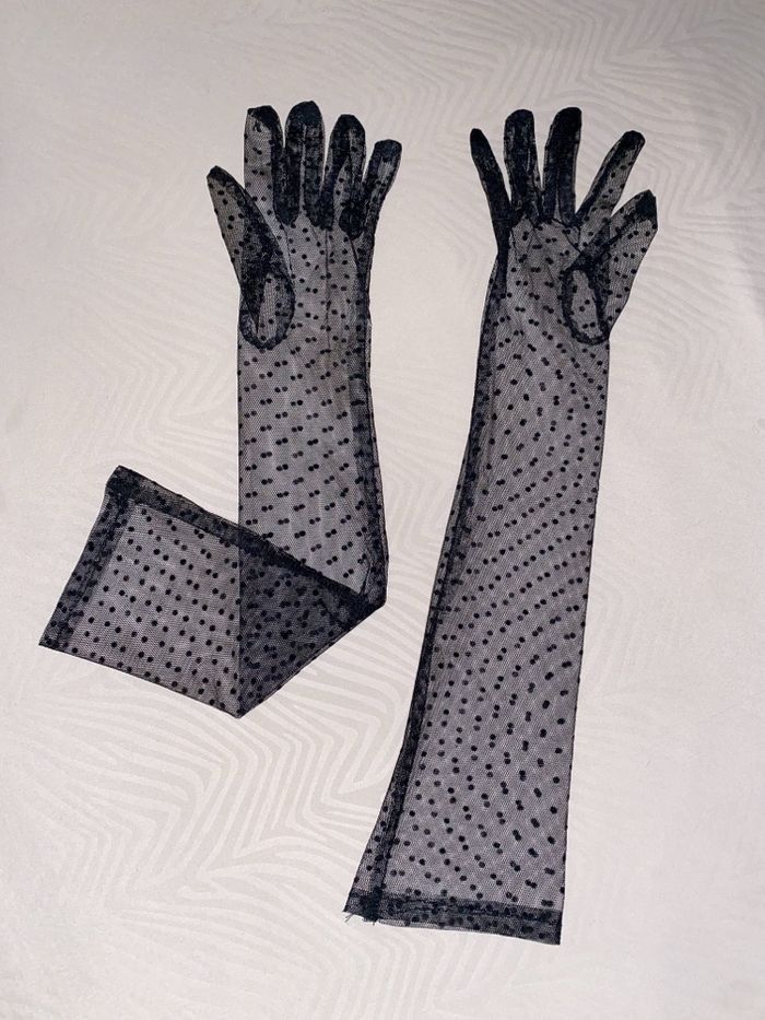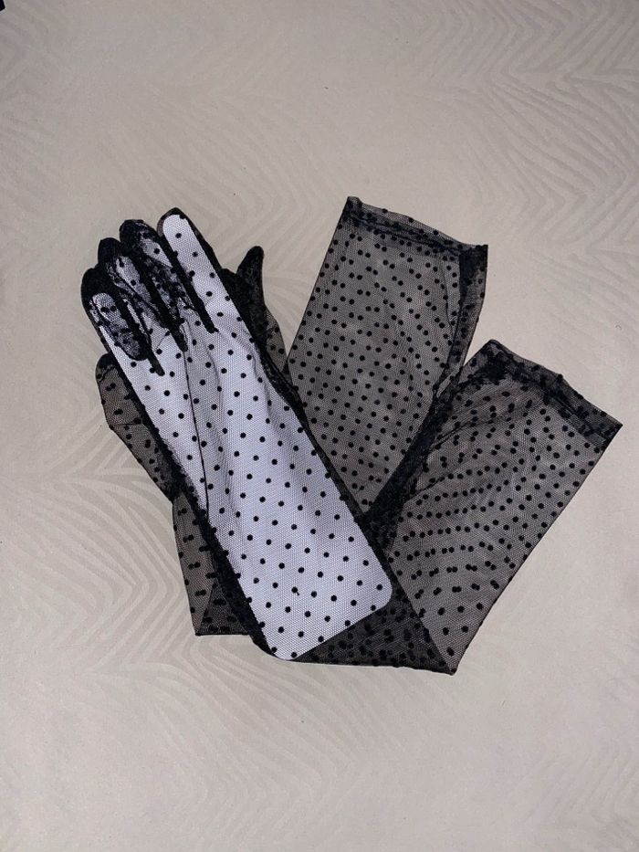 Gants en tulle et plumetis noir vintage Style  - photo numéro 1