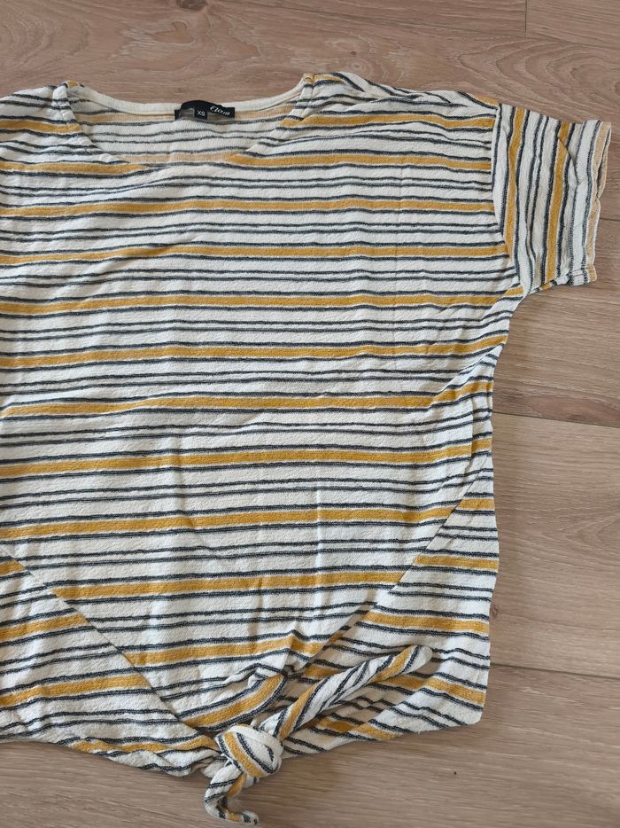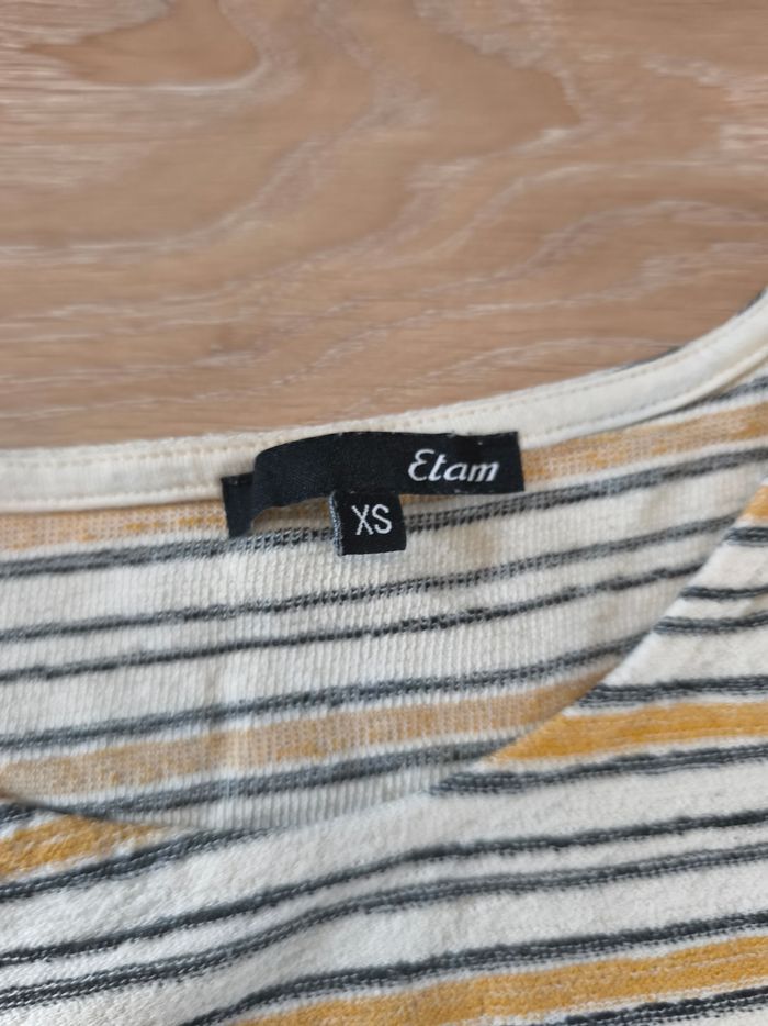 T shirt Etam, comme neuf Rayures écru, noir, et jaune moutarde Avec petit nœud en bas Taille XS
