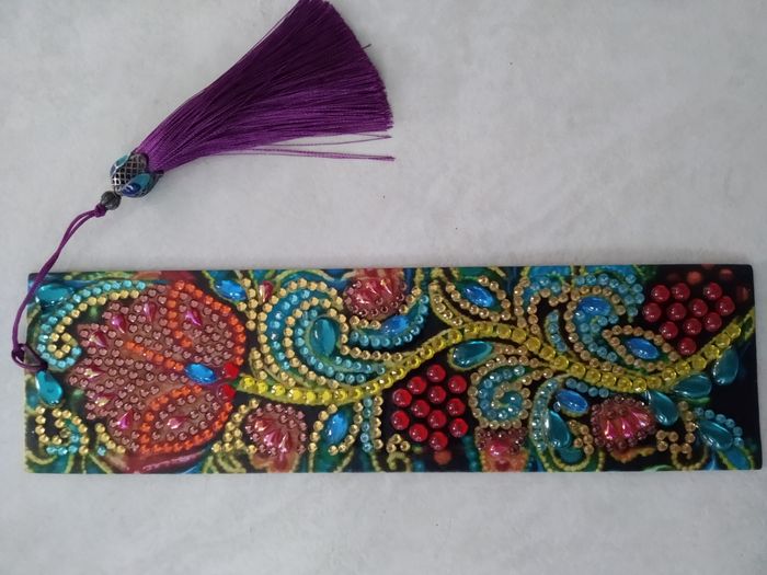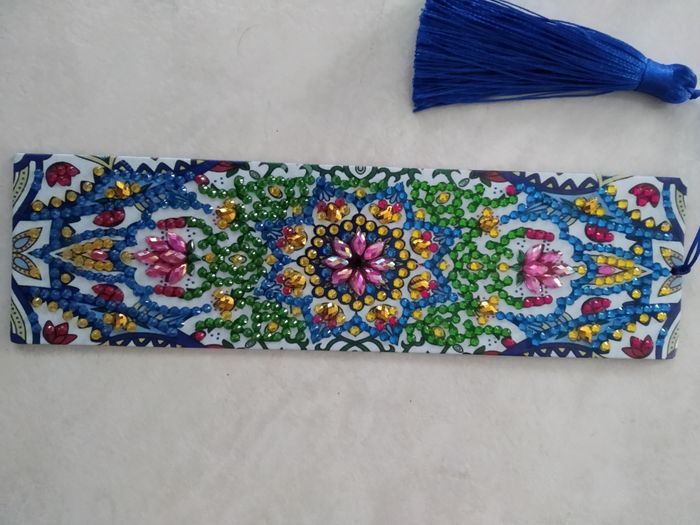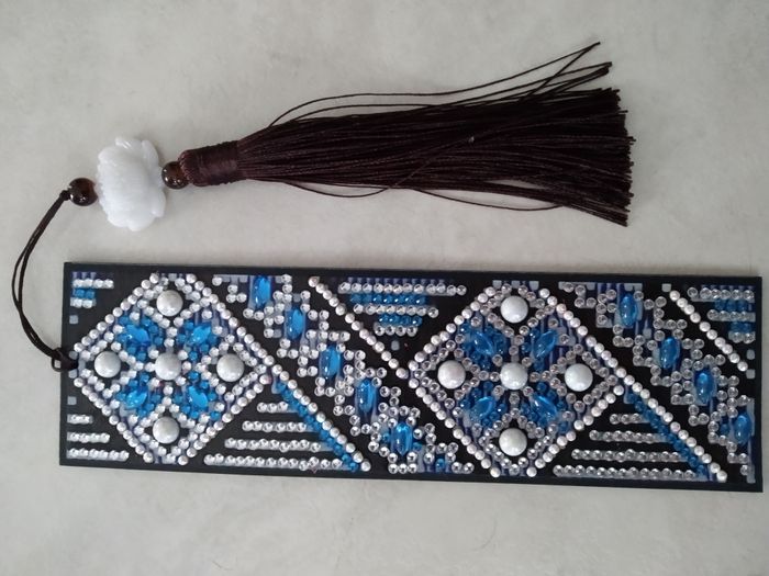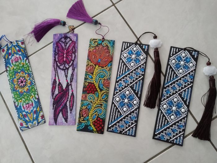 Très beau marque page en simili cuir et broderie diamant sur le recto. longueur: 20.5 cm largeur: 5.5cm Joli marque page à offrir ou à vous offrir pour vos moments de lecture ou écriture. plusieurs modèles aux choix (voir les photos): bleu/blanc; motif fleur, attrape rêve, multicolore N'hésitez pas à me contacter. L'envoi se fait dans une enveloppe à bulles en lettre suivie.