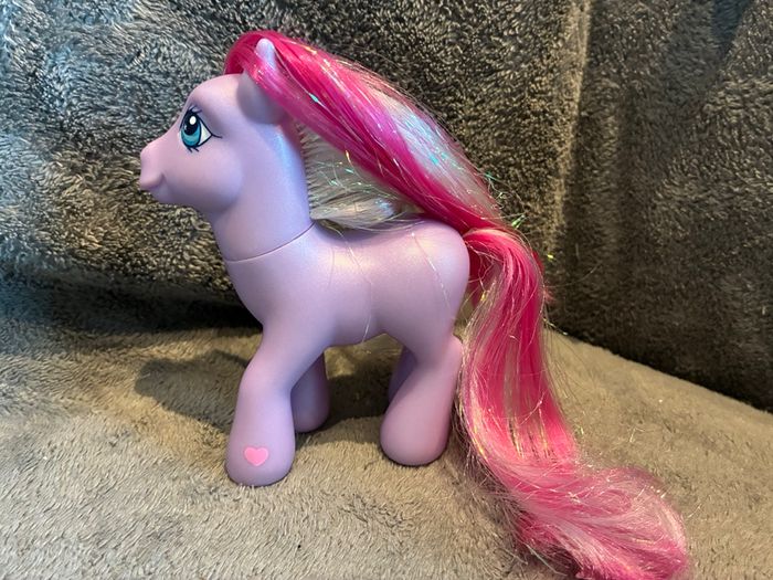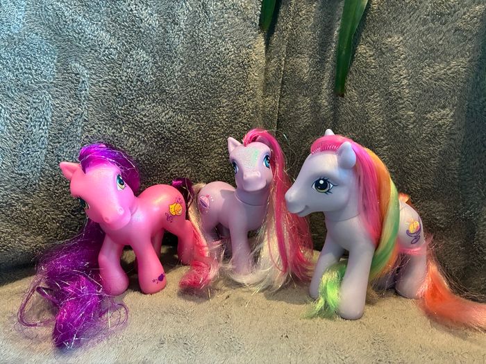 Lot Mon petit poney G3 vintage : * Glace / Rainbow Swirl 2007 Pattes arrières articulées / Crinière très douce et arc en ciel multicolore Vendu séparément du lot 8€ * Pretty Parasol Crinière et queue lavées, démêlées soigneusement et douces Crins brillants et Paillettes en parfait état Vendu séparément du lot 6€ * G3 /2002 : Silver Song Crinière brillante et longue en parfait état Théâtre / masque comédie Vendu séparément du lot 11€ Envoi soigné D’autres MLP dans mon dressing #stefetjuju51jeux maison non fumeurs bien d’autres choses dans mon dressing de nouveaux articles très régulièrement nombreux # dans mon profil pour faciliter vos recherches merci pour votre visite et belle journée ☺️ #monpetitponey #g3 #arc-en-ciel #glace #rainbowswirl #prettyparasol #silversong