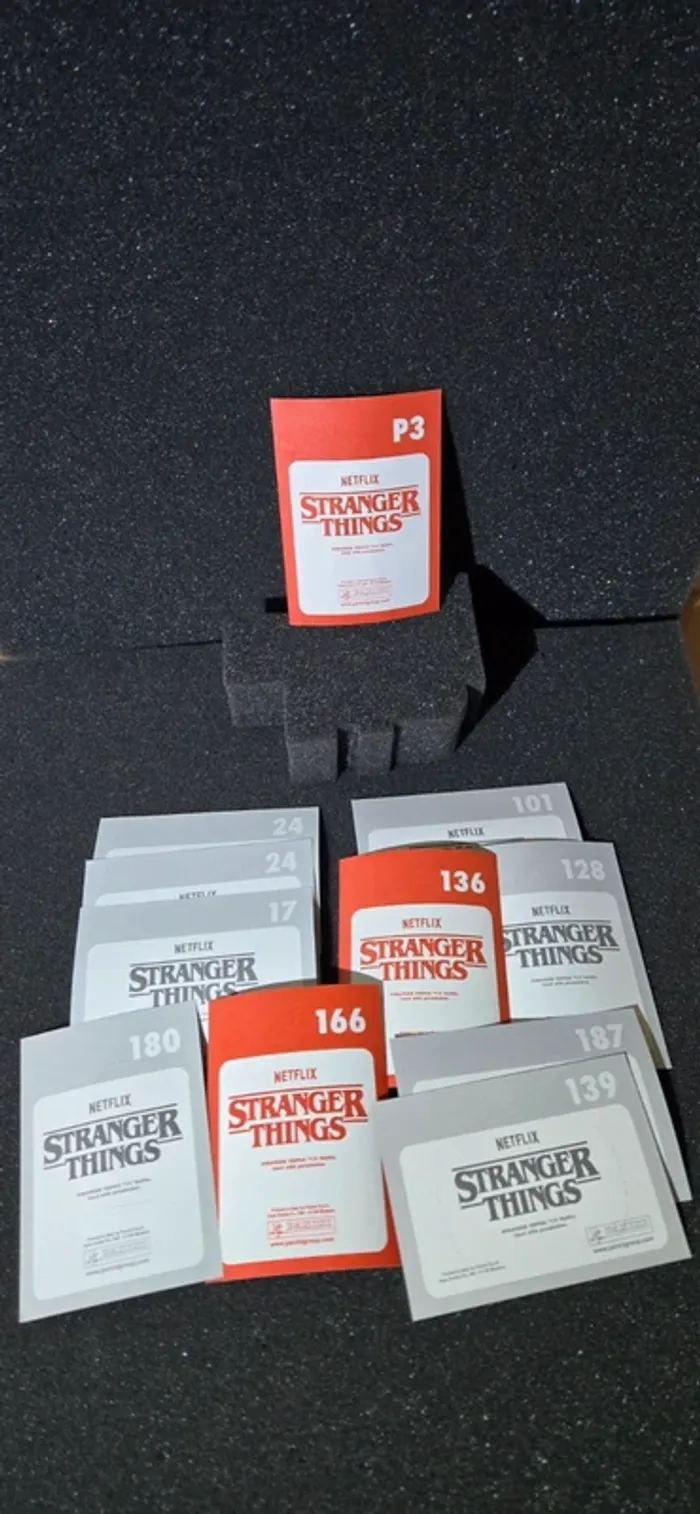 ENVOI UNIQUEMENT PAR COLISSIMO OU CHRONOPOST OU RELAIS COLIS !!! Lot de 11 stickers panini Stranger Things Numéros : 17,24x2,101,128,136,139,166,180,187,p3 En excellent état
