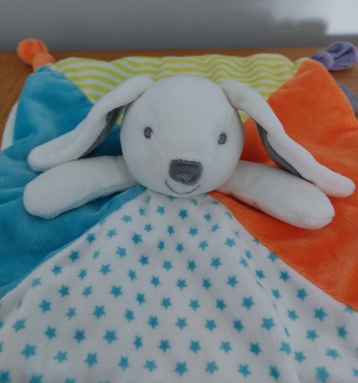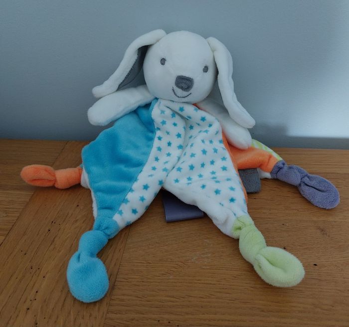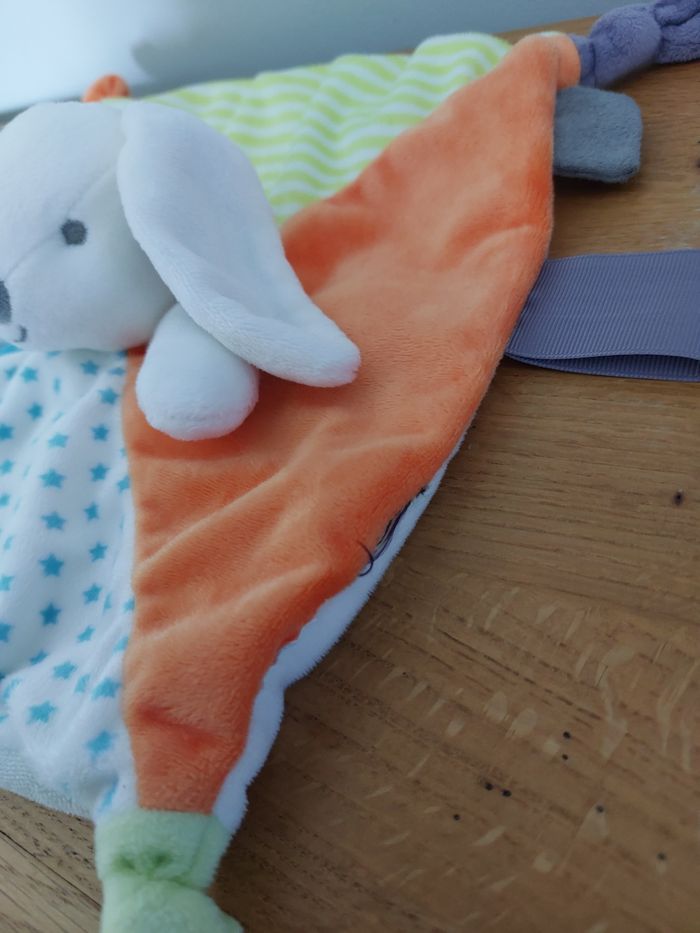 Doudou plat lapin - blanc bleu vert Obaïbi - photo numéro 5