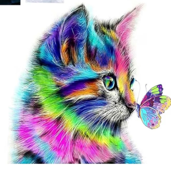 Kit de diamond painting complet représentant un chat avec un papillon sur le museau - Type de produit : Diamond painting - Motif : Chat multicolore et papillon - Taille : 30*30 une fois terminé Neuf (le kit est scellé jamais ouvert ) Pensez aux lots : réductions activées