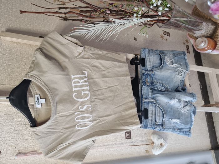 Je vends ce petit ensemble composé d'un short ✔ Marque : softy denim ✔ Taille : S ✔ État : bon état ✔ Couleur : bleu et un top creme 00's girl ✔ Marque : h&m ✔ Taille : S ✔ État : très bon état ✔ Couleur : beige