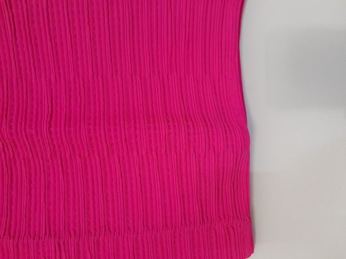 Mini jupe, effet gaufré, élastique à la taille Longueur : 35cm Taille en cm : 29 Matière : 60 % Polyester, 40 % Elasthanne Marque : sans étiquette