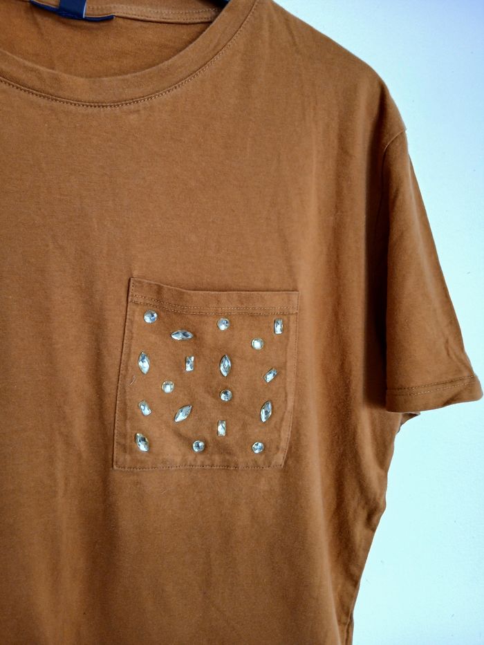 Tee-shirt femme t.S couleur roux,poches avec strass.