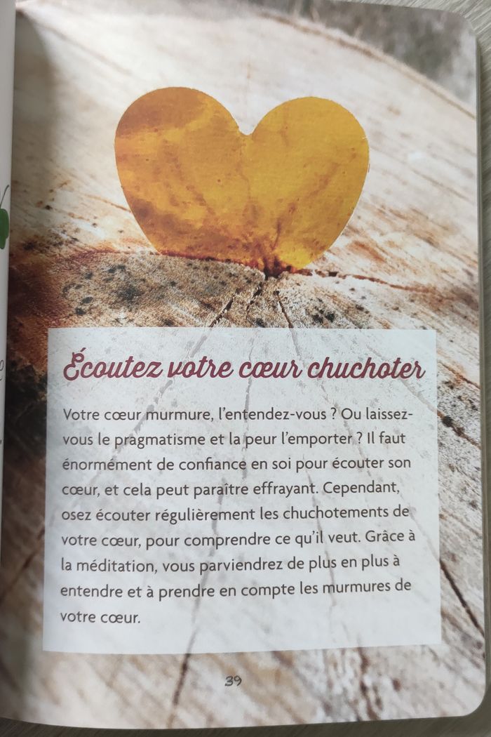 Livre en parfait état, seul la couverture est un peu abîmé, déchiré devant ( voir photos). On a l'impression qu'il y a des tâches blanches mais c'est la couleur de l'impression du livre. Souhaitez-vous vous sentir moins stressé, avoir une vie plus calme et plus gratifiante ? C'est possible si vous appliquez les principes simples de lu pleine conscience qui vous enseigne comment embrasser tout ce que la vie a à vous offrir. Je sais méditer est une mine des conseils, de sources d'inspiration et de gestes pour transformer chaque jour en une journée sereine, détendue, et pour vivre dans l'ici et le maintenant.