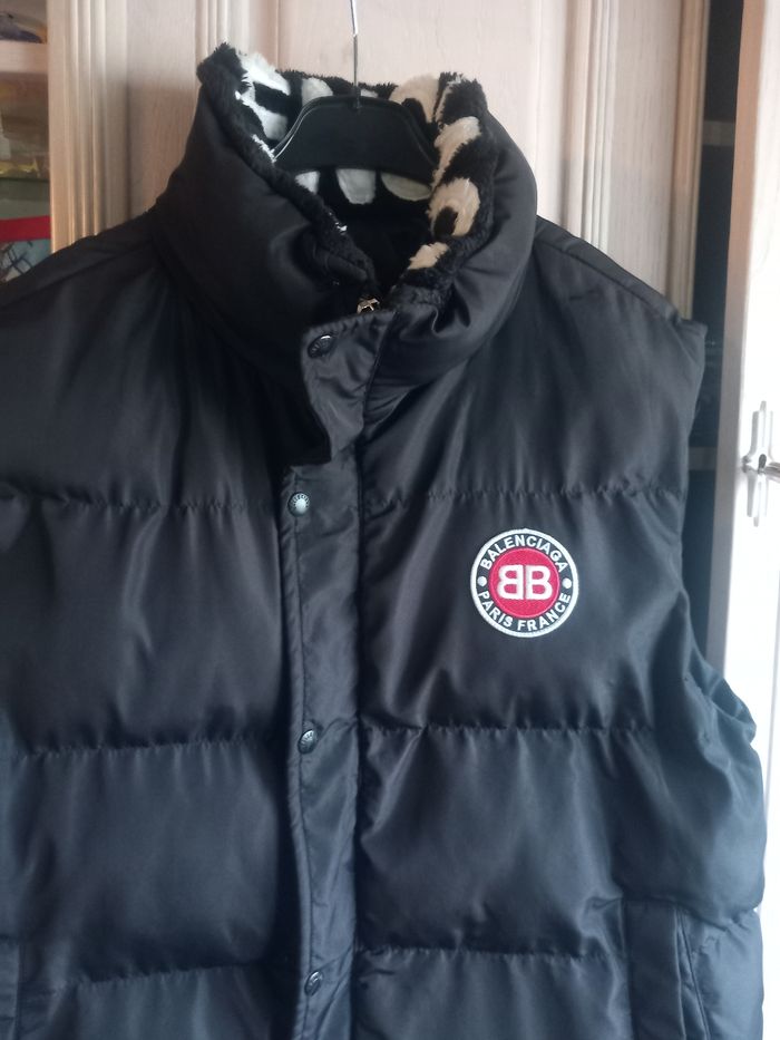 Manteau sans manches homme Matière 100% polyester Marque Balenciaga Taille unique voir dimensions Couleur noir Fermeture zipper et pressions Dimensions approximative 75cm de long : largeur sous aisselles 63cm : largeur d'épaules 52cm En bon état