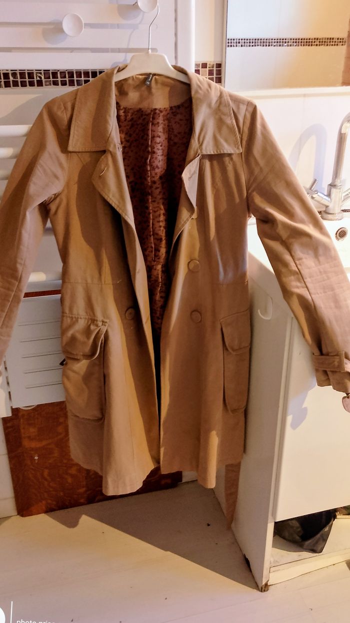 Naf naf, très jolie doublure à motifs, manteau très classe, avec sa ceinture et ses 2 poches