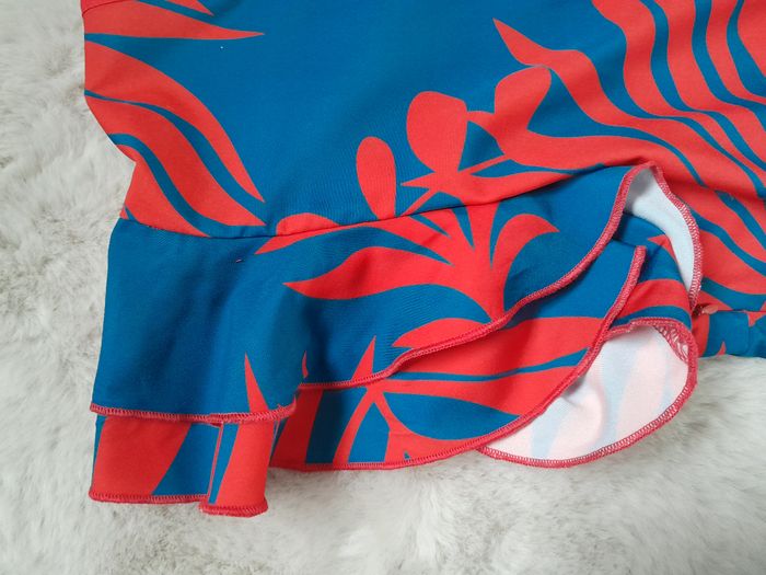 Je vends cette robe longue femme aux motifs tropicaux bleu et orange - Type de produit : Robe longue - Univers : Femme - Taille L - Couleur : Bleu et orange - Caractéristiques : Motifs, Sans manches, 1 épaule dénudé, N'hésitez pas à me contacter pour plus d'informations ou de photos.